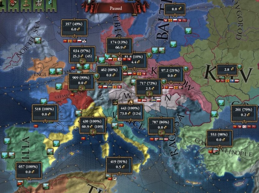 英国海峡の影響度が低かった時の名残でシャンパーニュに商人がいますが、別の場所に派遣すればもう少し稼げそう。