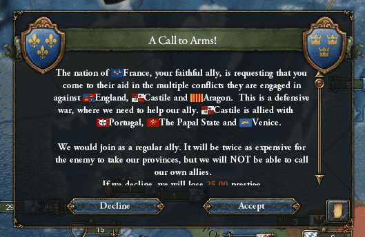 ああ、カール八世の継承権の強さはWeakだったな。