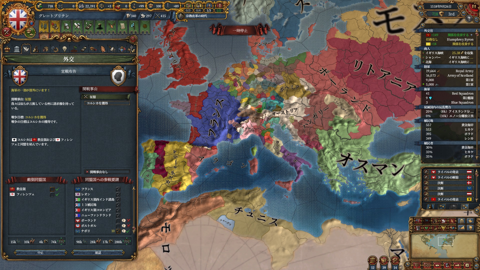 (アヴィニョンはついでですが)コルシカ戦で参戦している国に×が付いている国に宣戦します。