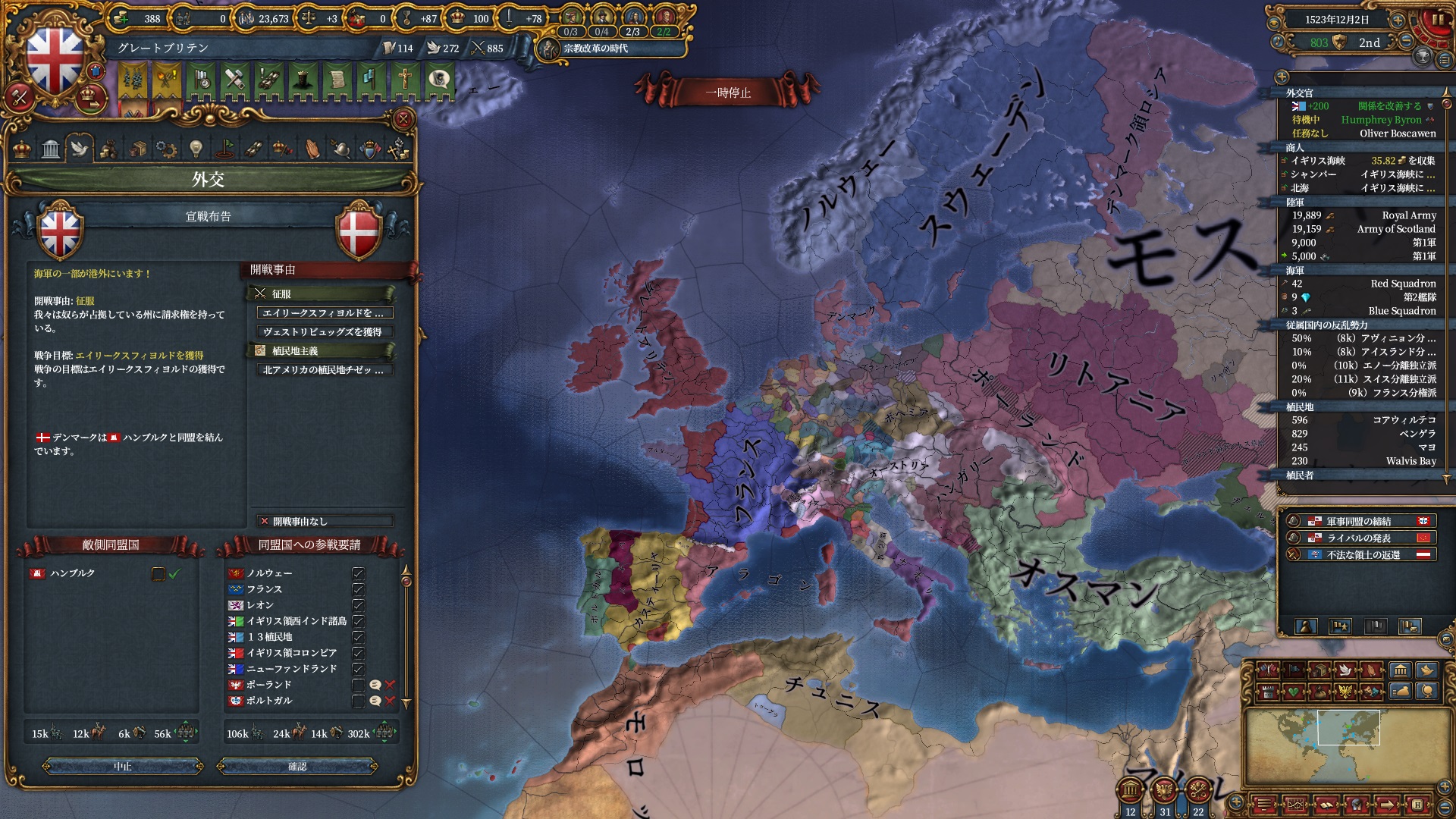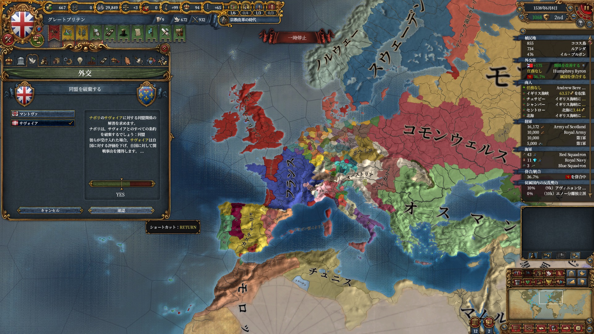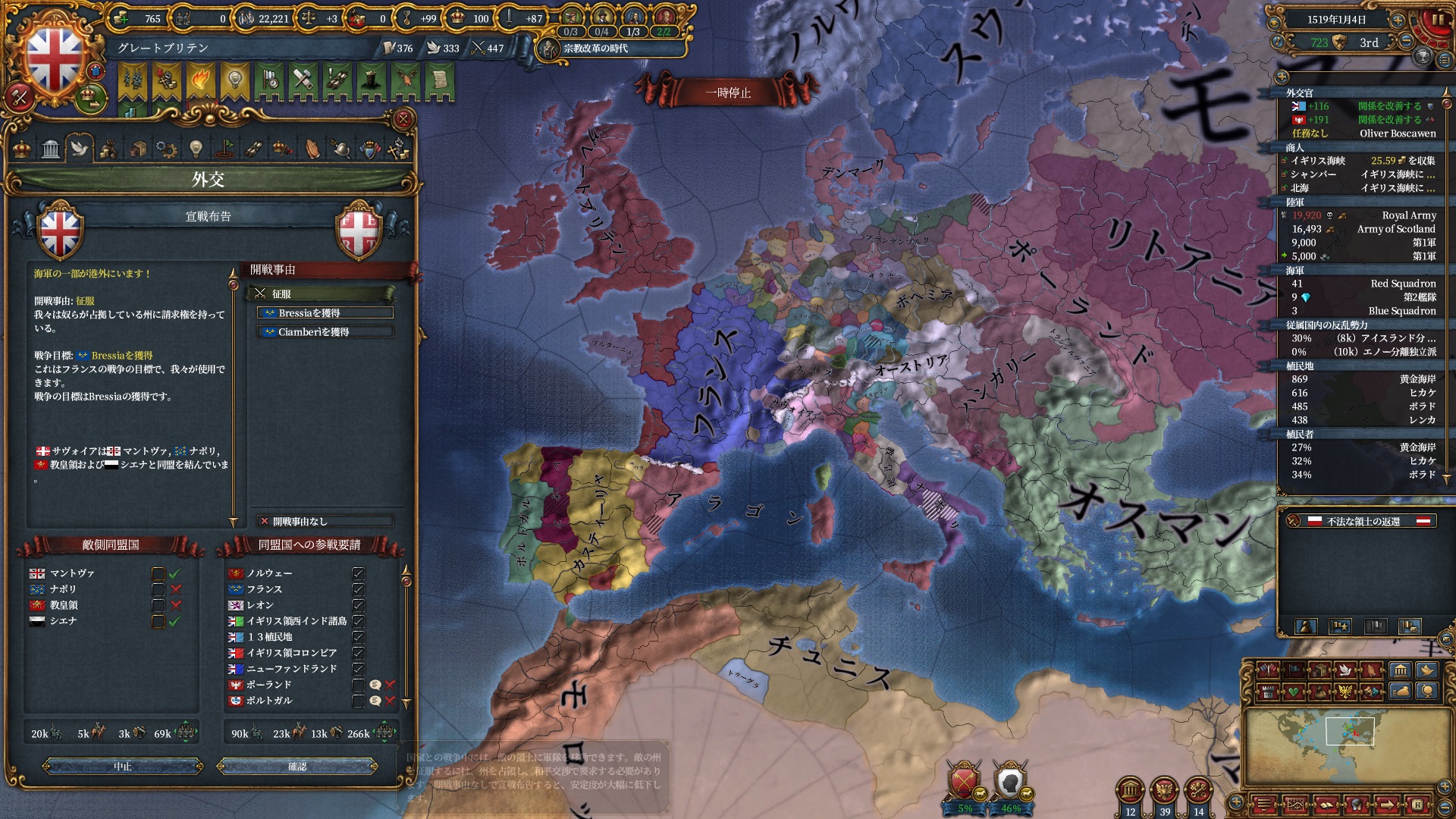 1.34では同盟の維持が難しいとか領土欲が凄いとか噂が凄いですが、どんな程か見てみようかと思います。