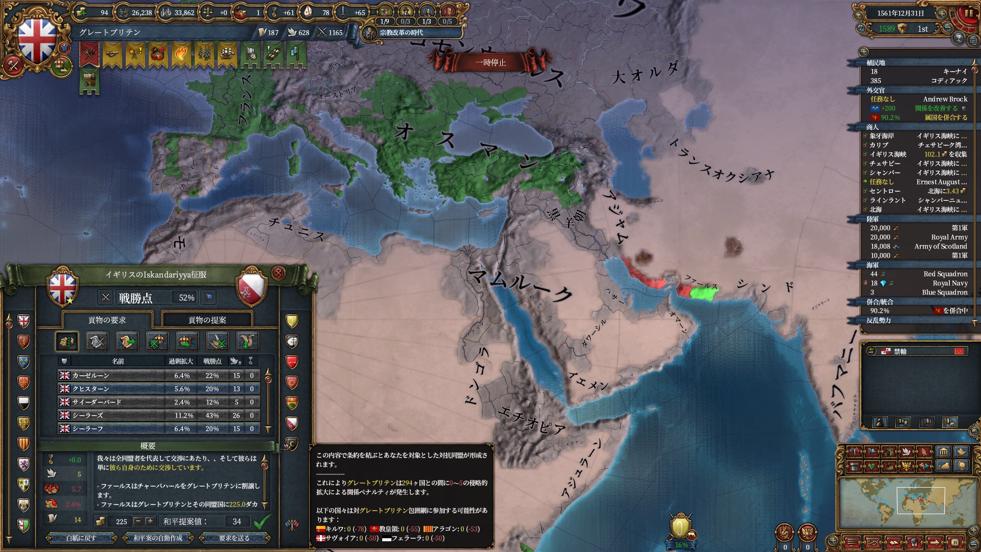これでマムルーク方面への請求権が付いたため、あちら方面に進出する事が出来るようになりました。