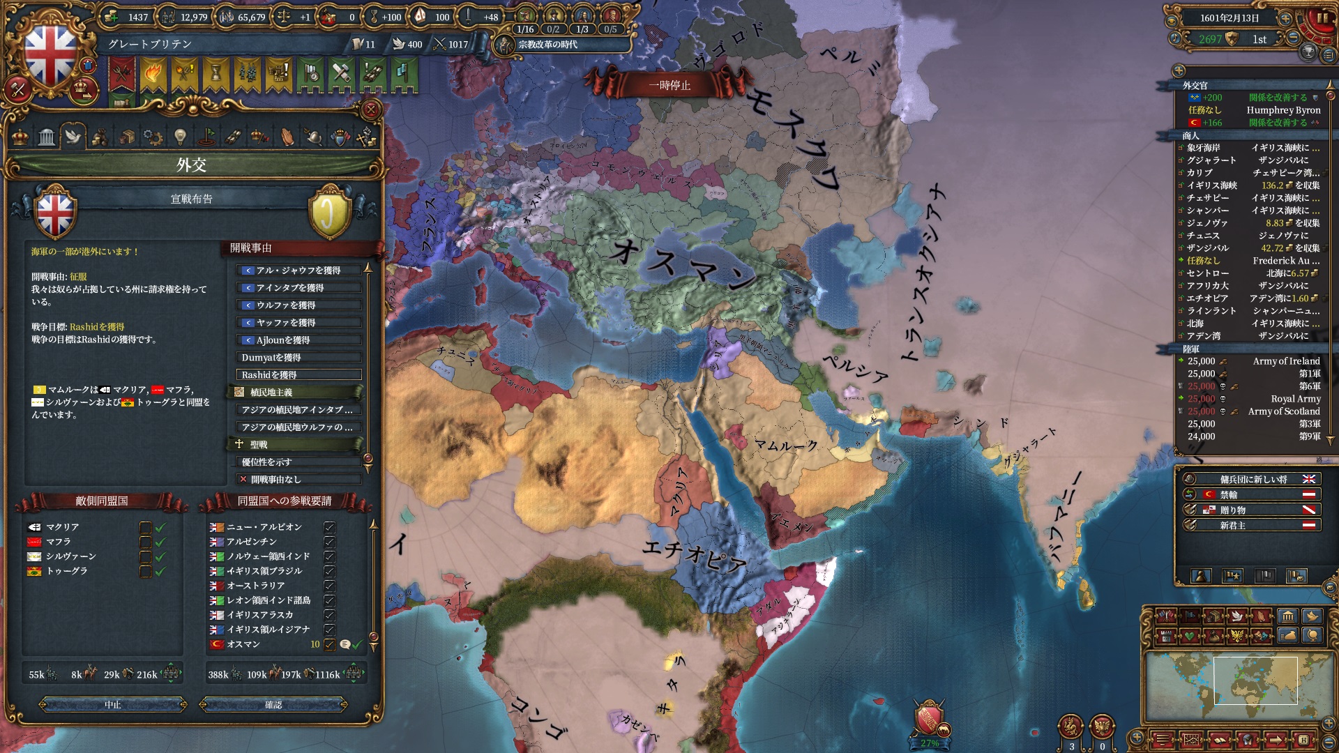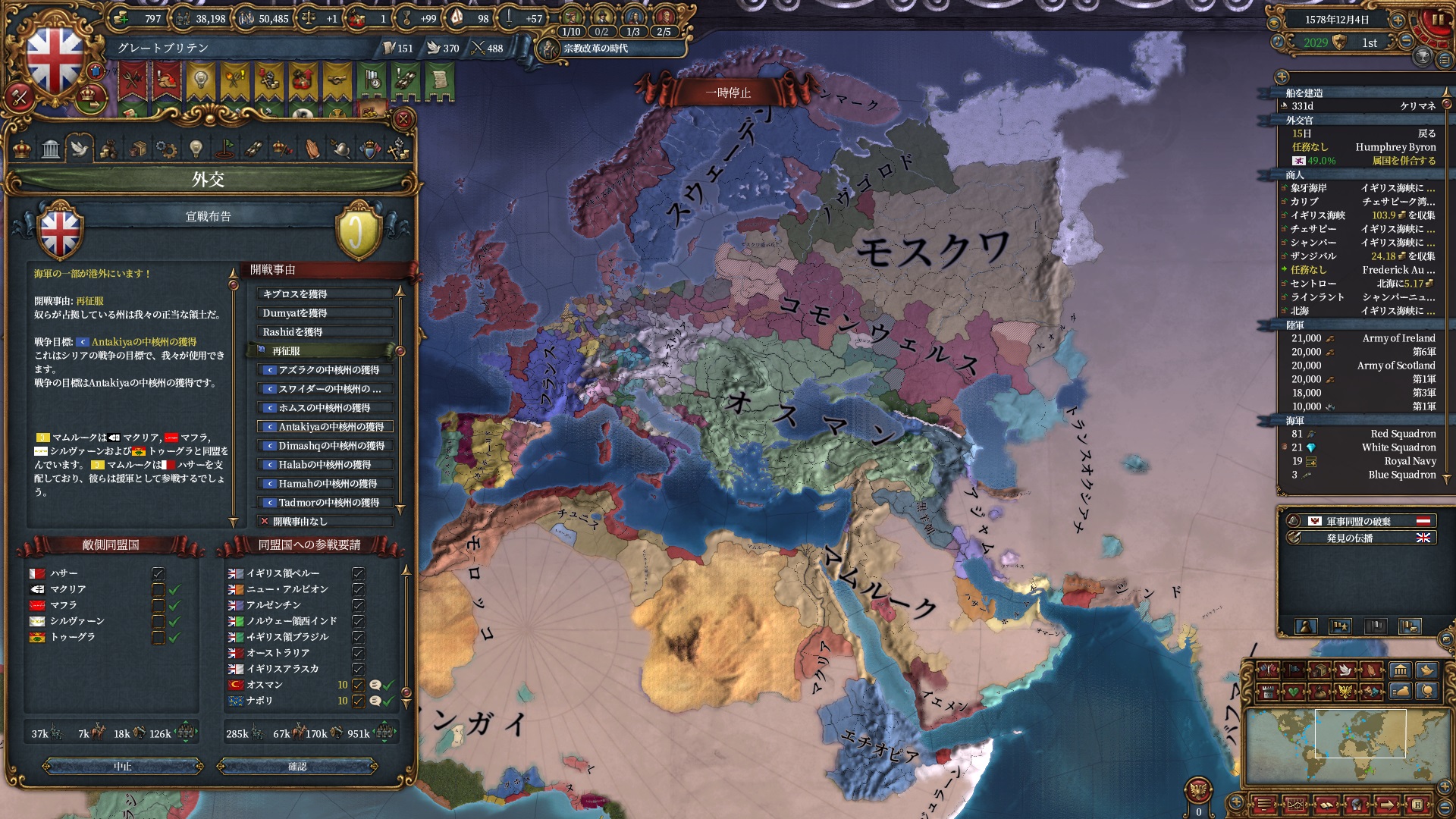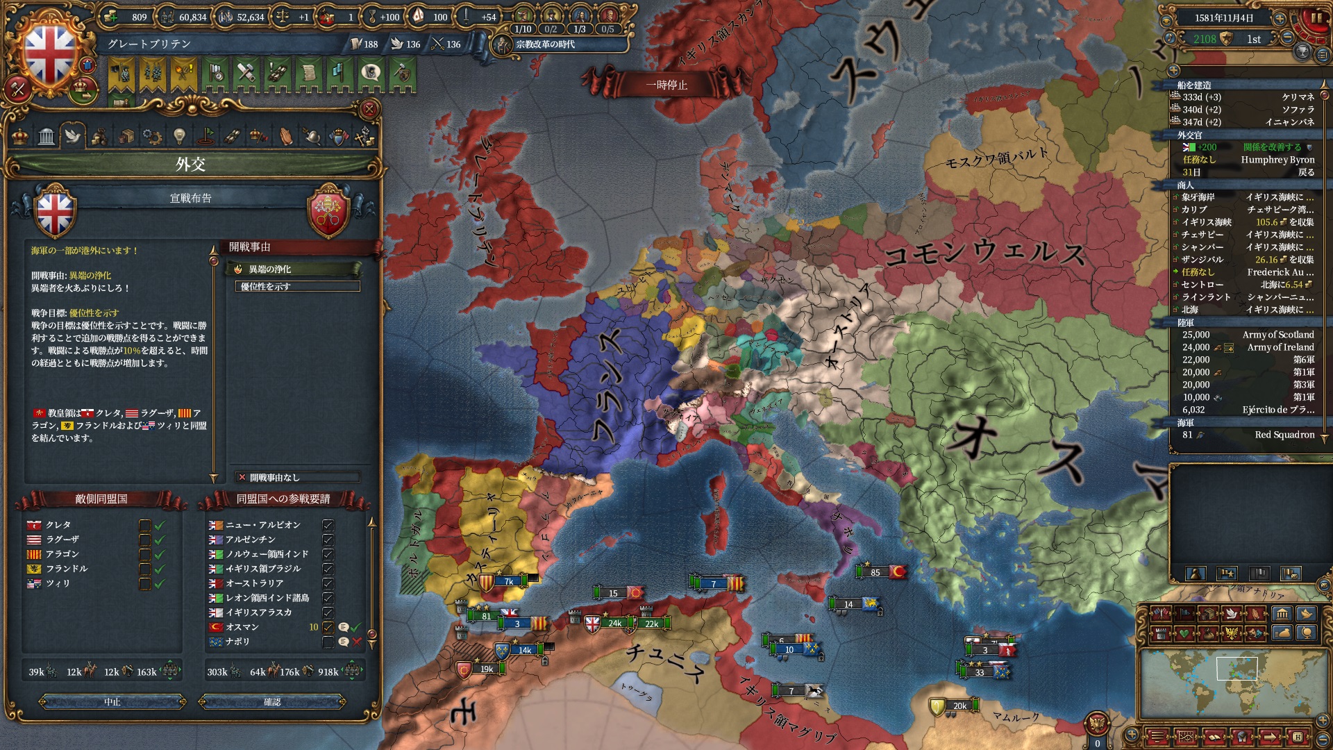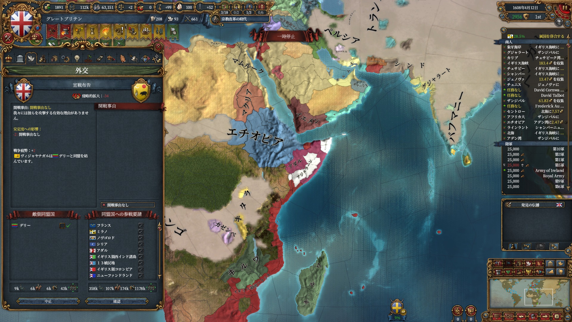 欧州方面は大量の属国とオスマンに任せて大丈夫なので、本国軍はこちらで頑張って貰います。