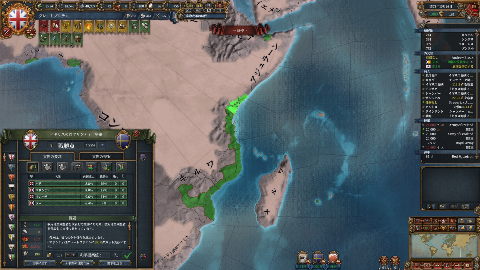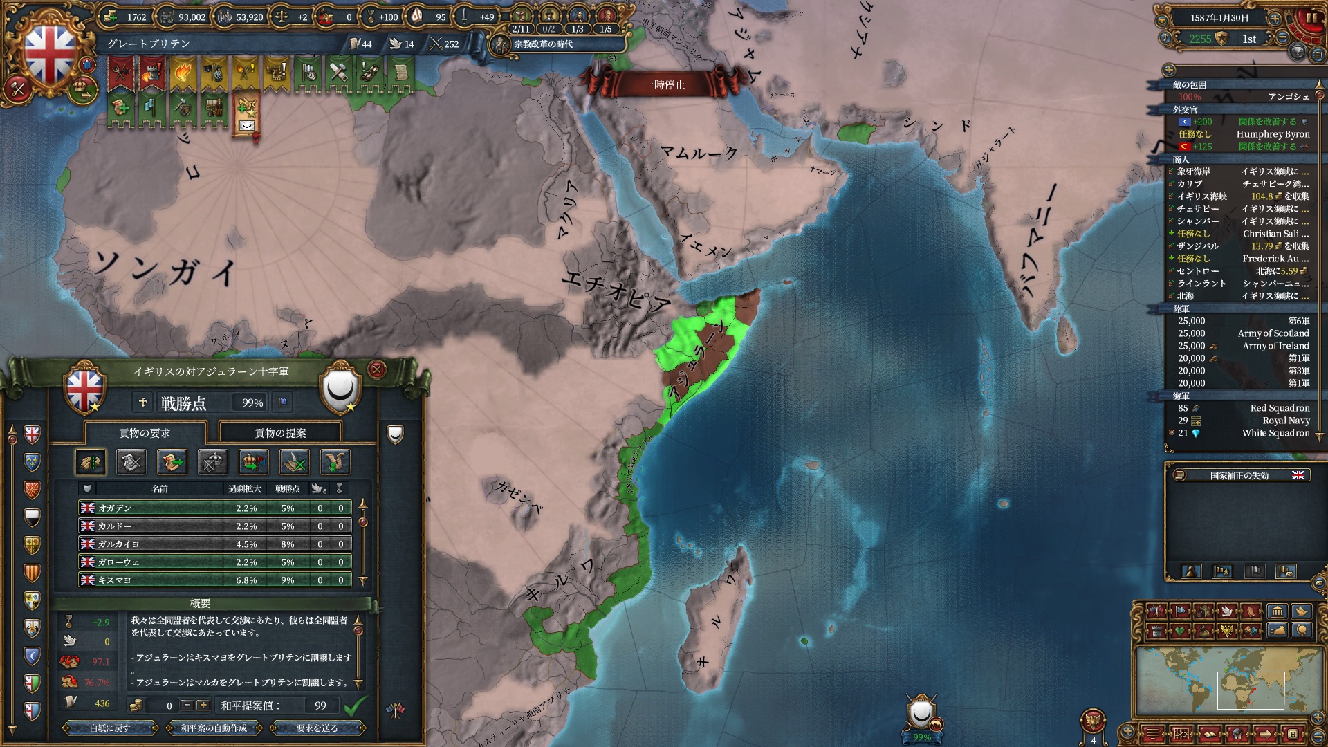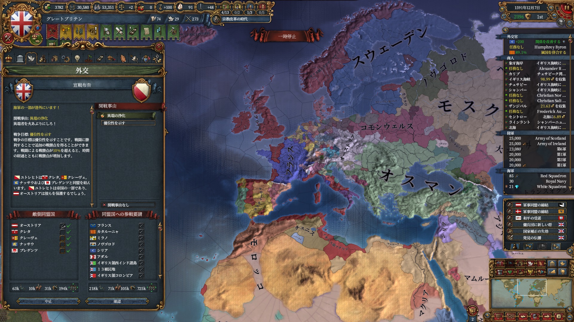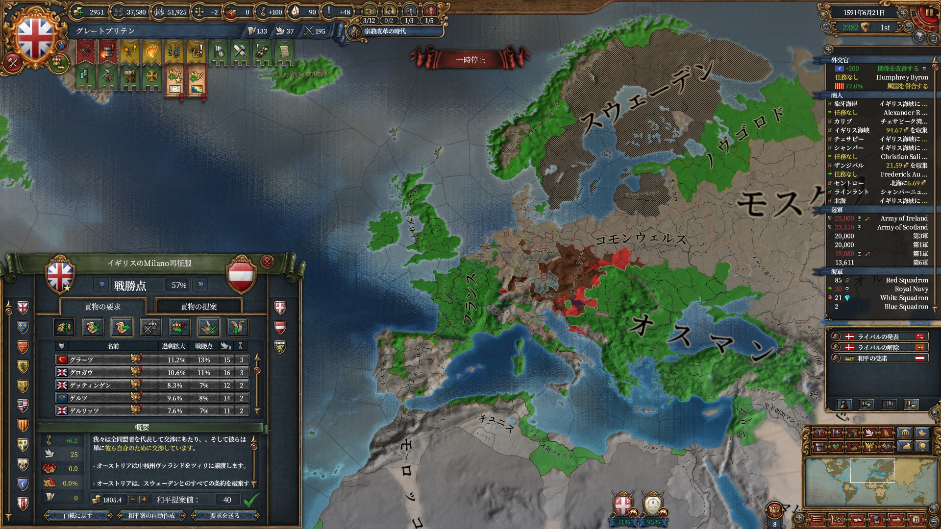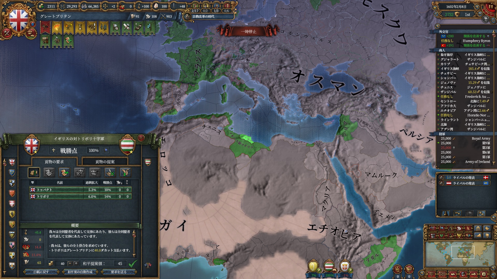 欧州方面は大量の属国とオスマンに任せて大丈夫なので、本国軍はこちらで頑張って貰います。