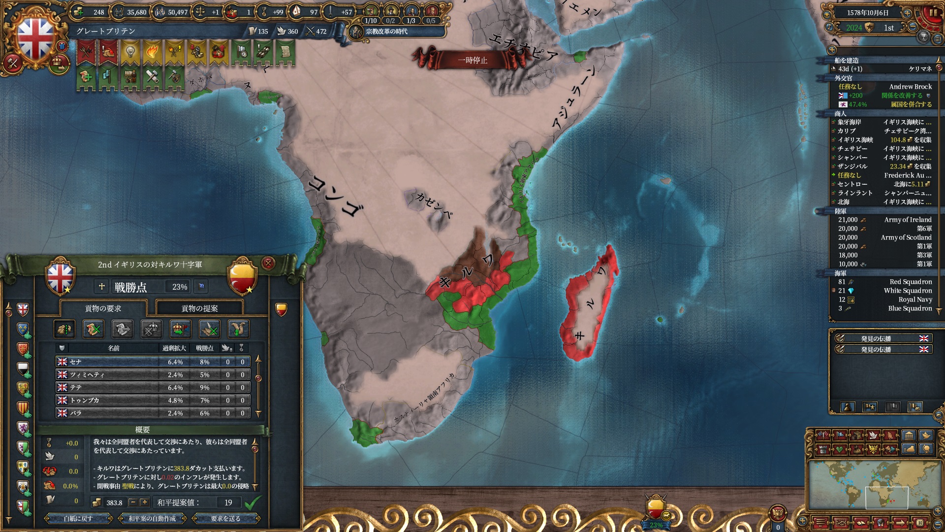 この後キルワは東南アジア諸国やモロッコと同盟し外交関係がなかり強化され暫く殴りにくくなったので、惜しい事をしました。