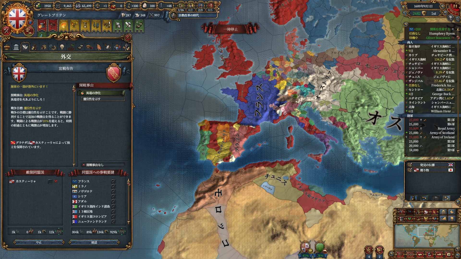 先のカステラ戦の途中ですが、アラゴン?か誰かに吐き出されたのでその間に宣戦だけしています。