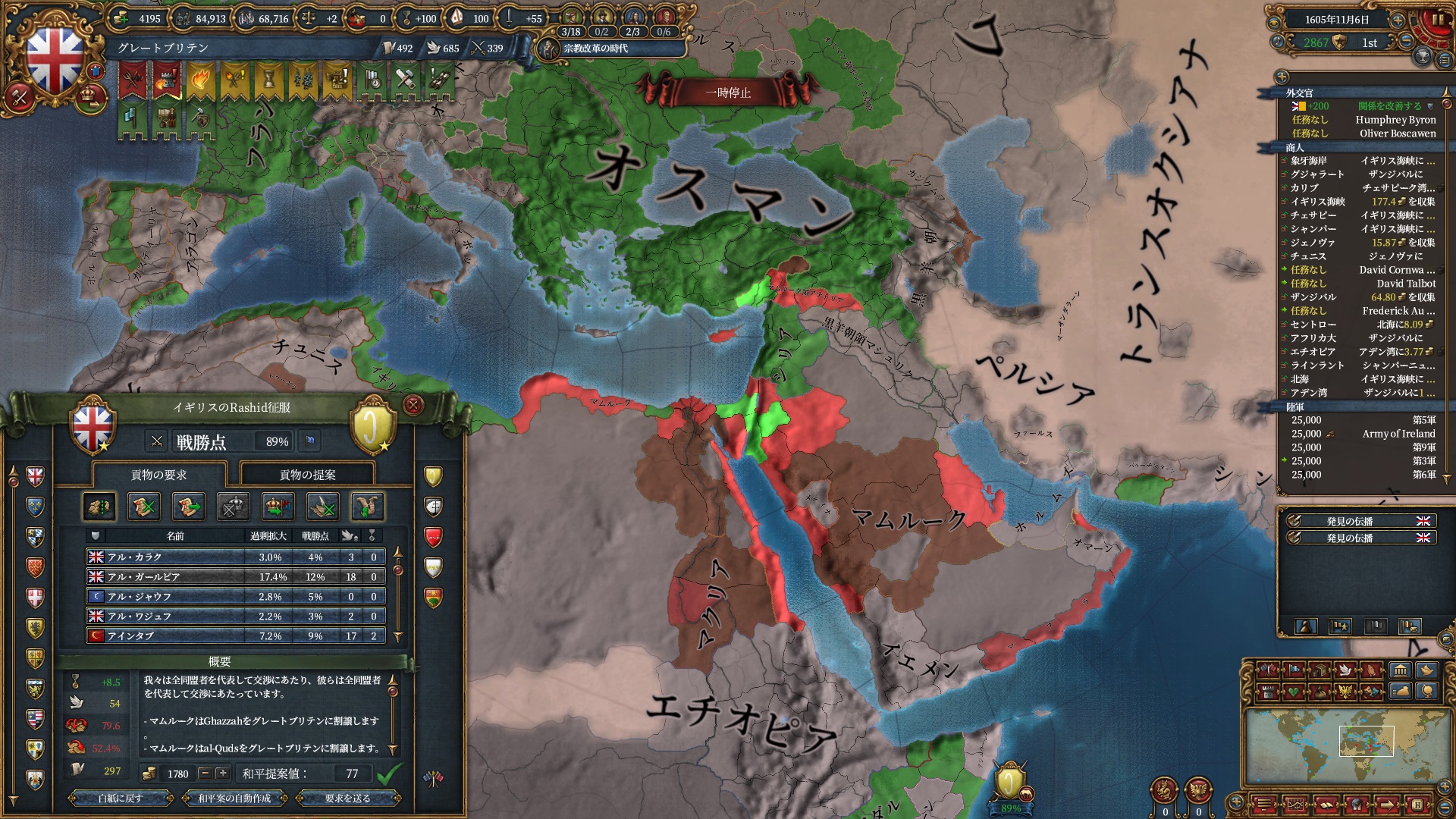 オスマンはまだアナトリア方面のミッションが終わってないためか、強い領土欲が無さそうで安心しました。