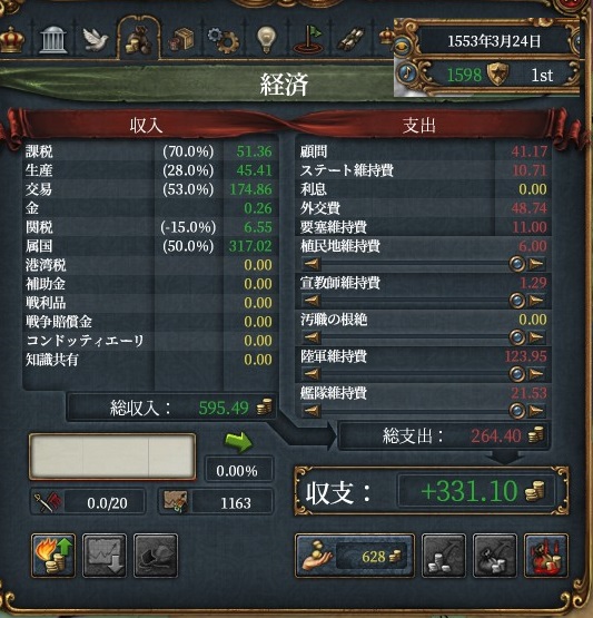 政府を強化で上げる場合は軍事100につき絶対主義2ということを考えるとお得です。
