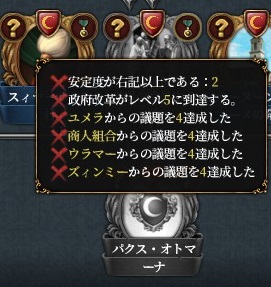 また、ズィンミー議題達成→ズィンミー階級削除→ズィンミー復活のような場合、議題達成カウントはリセットされます。