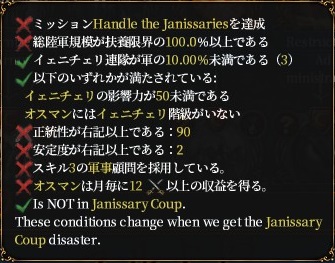 イェニチェリの影響力50未満かイェニチェリ階級がない場合のどちらかを満たす必要があります。