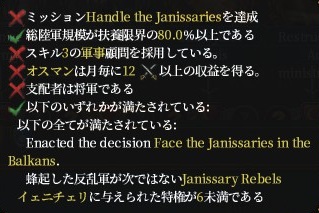 これを達成するとイェニチェリと交渉かイェニチェリとの対峙(バルカン)のディシジョンを使えます。