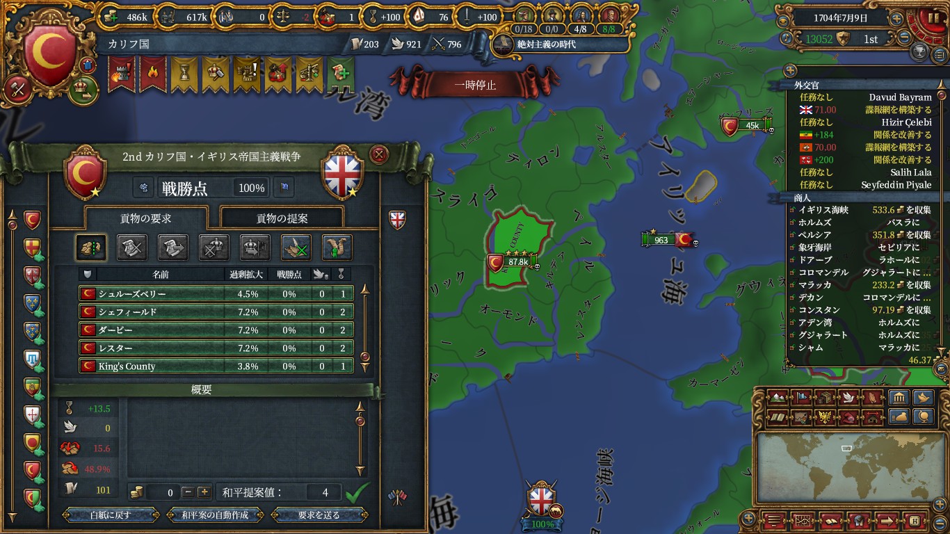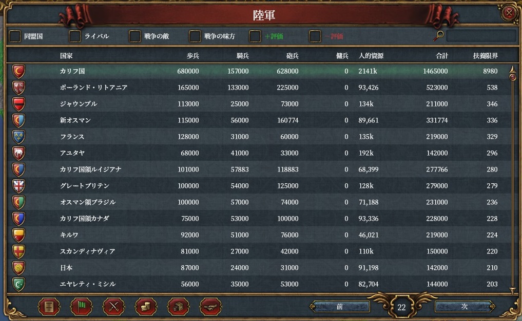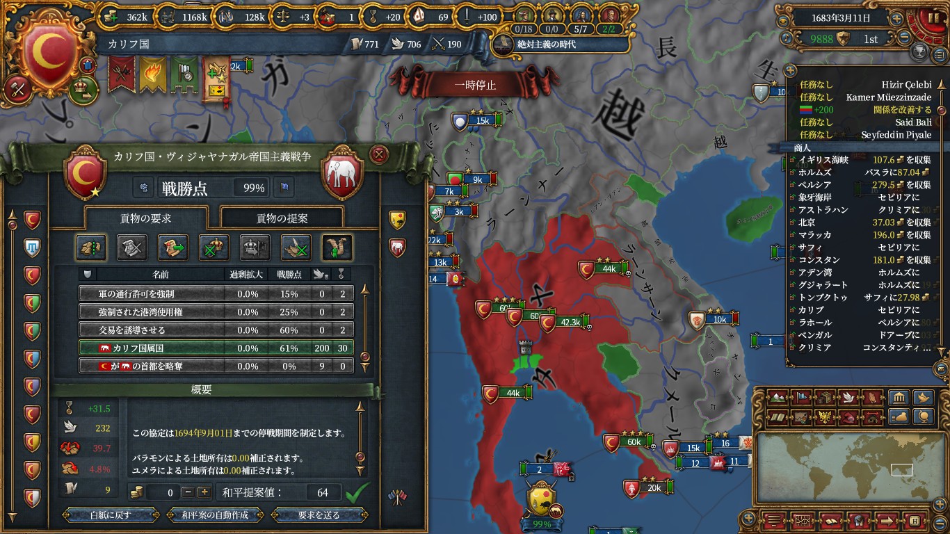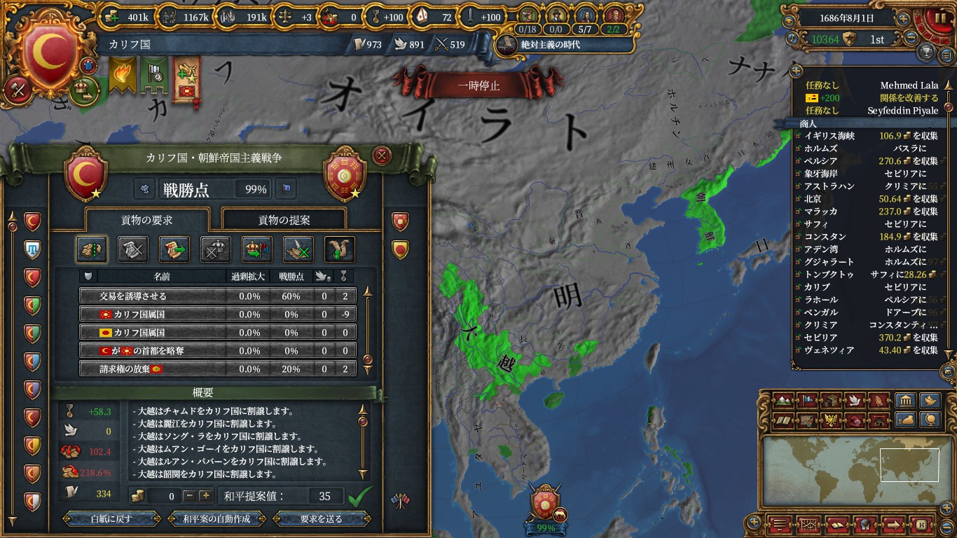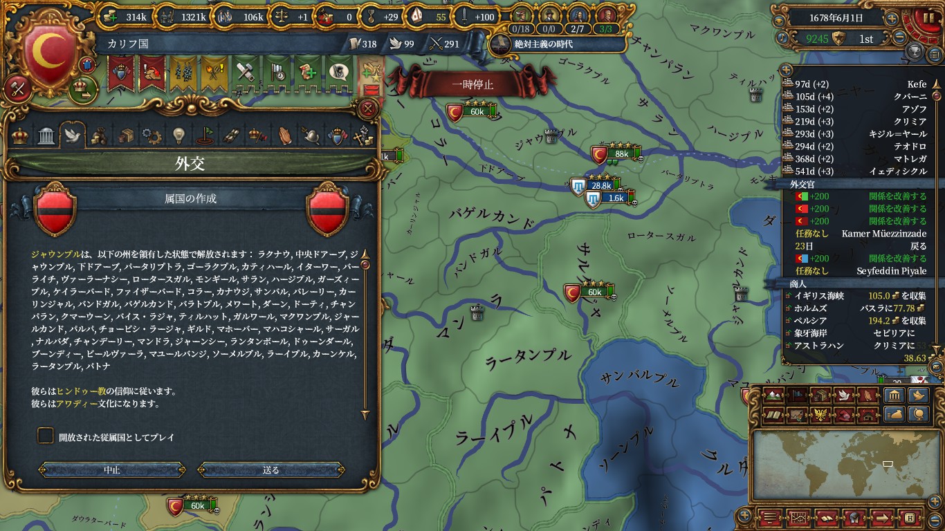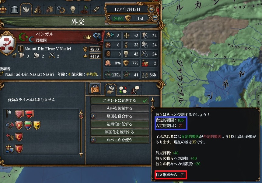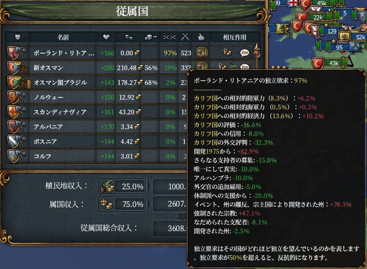 内政面でもエヤレト乱立プレイでは属国からの扶養限界+100%と属国収入+25%はかなり寄与してくれます。
