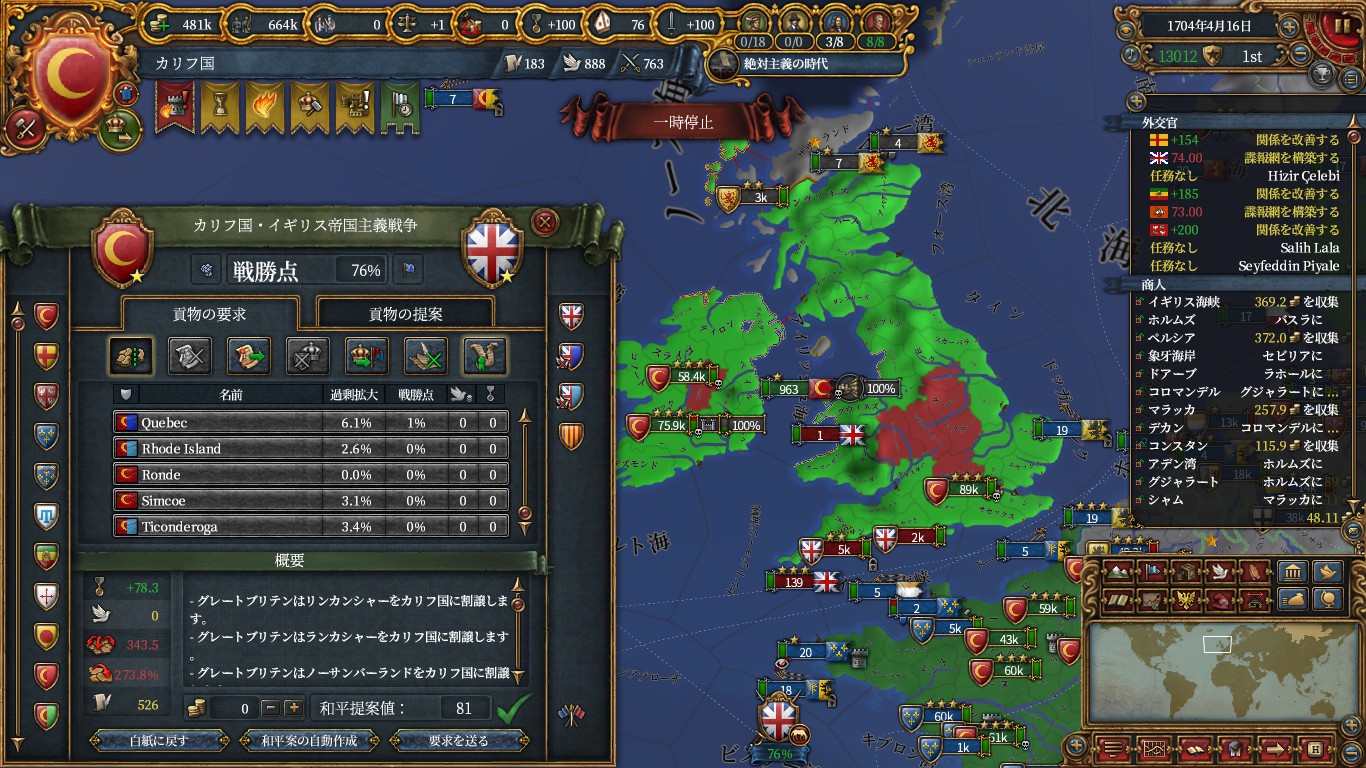 1676年、統治外交技術23に到達し帝国主義CBと統治効率+10%をゲット。