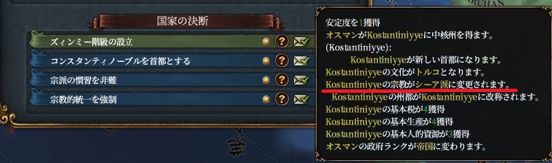 ちなみにコンスタンティノープル遷都ディシジョンもコンスタンティノープルがシーア(イバード)に変わってくれます。