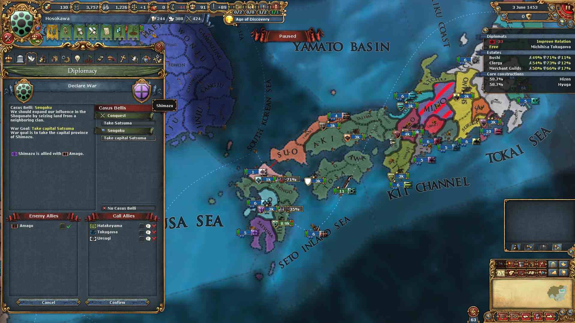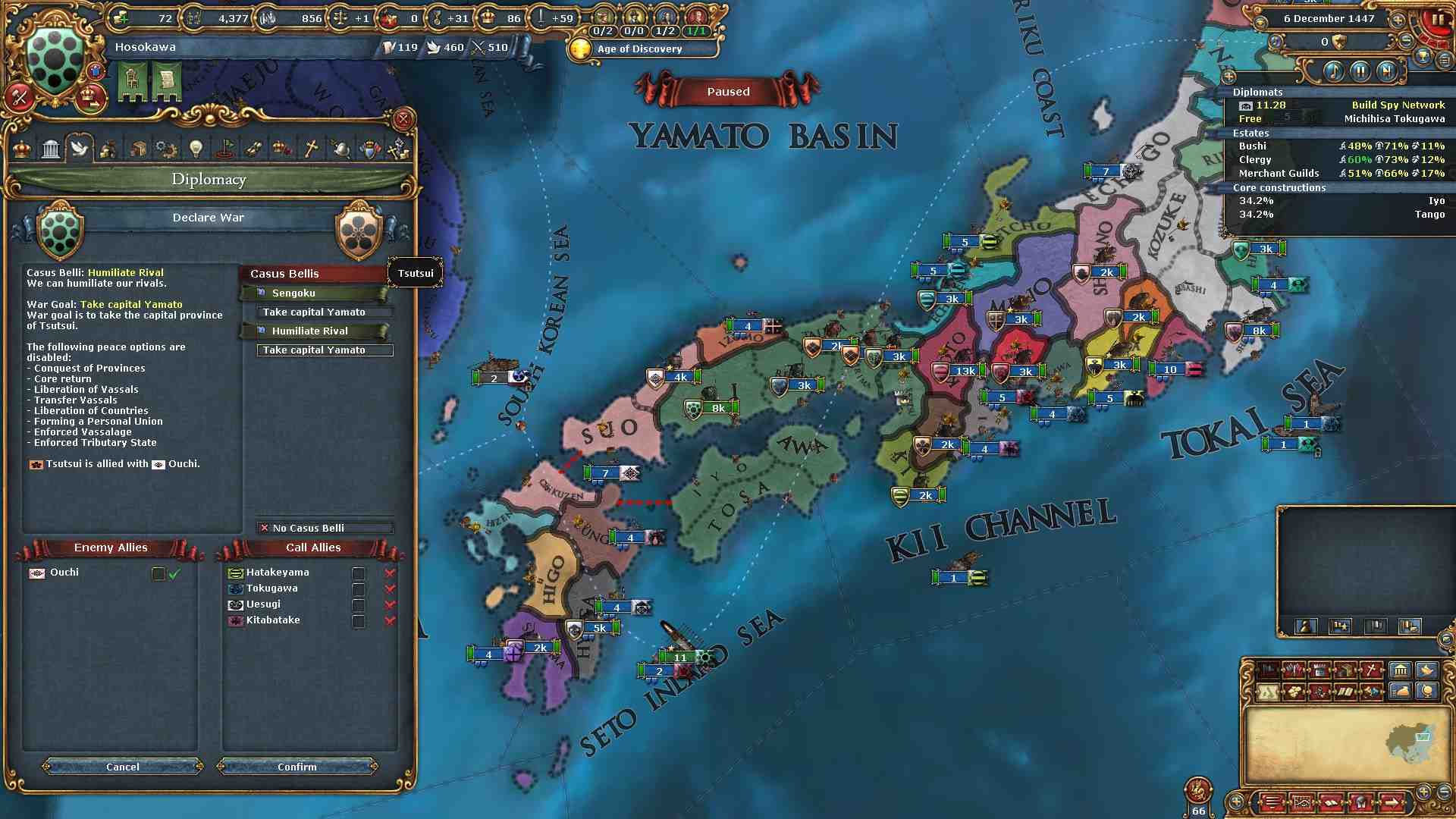 日本の大名家の宣戦事由である「戦国CB」で戦争をしかけます。