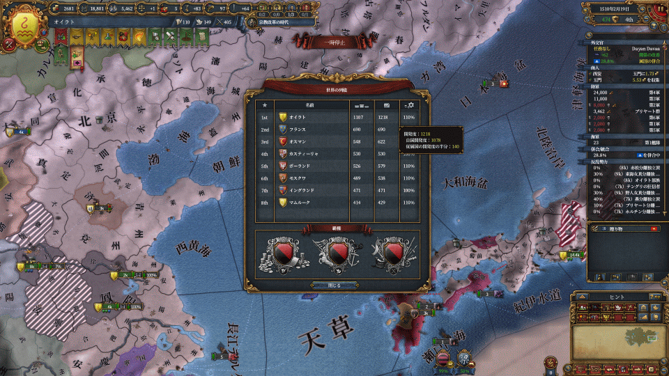その後もメインは中国大陸と日本列島の制圧で、スンニをちょっと削る感じです。