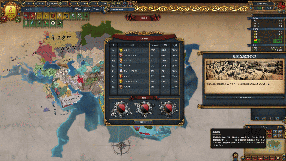 開発度は3549。うーむOirat Speed Run様はもうWCする頃じゃなかったでしたっけ。