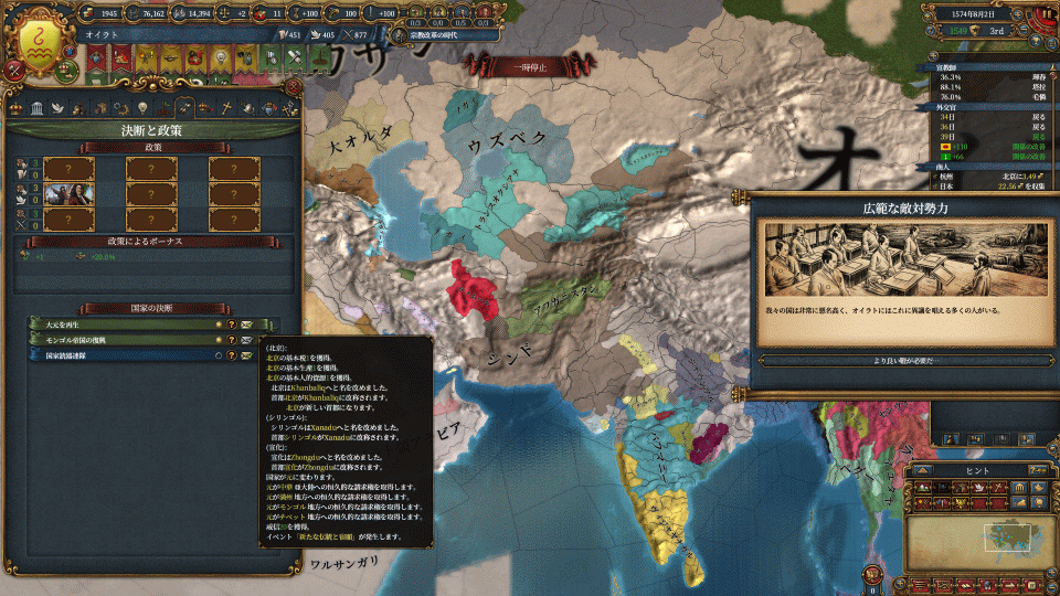 モンゴル族の再統一は「文化の登用最大数+3」を選びました。