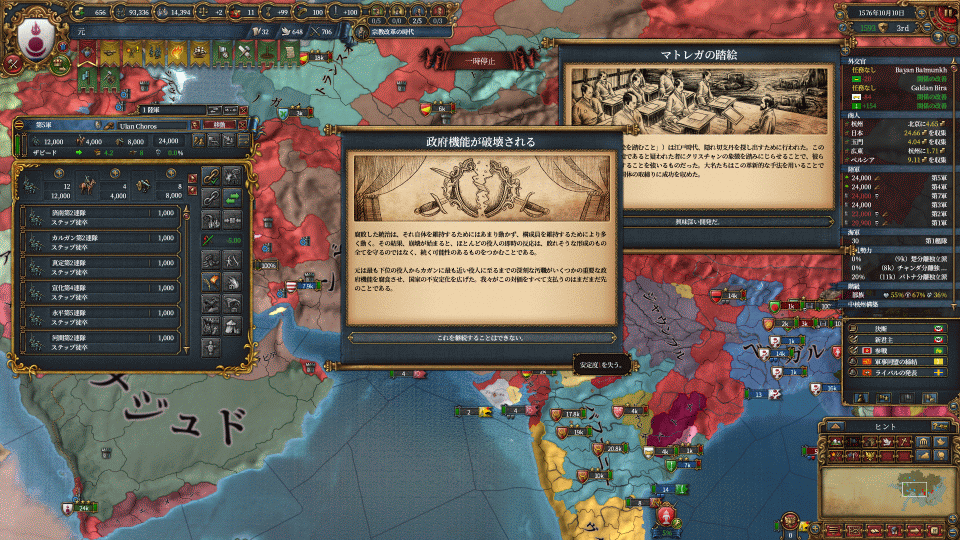 ここまで汚職放置によって財政の足し+不穏度減としてきたのですが、