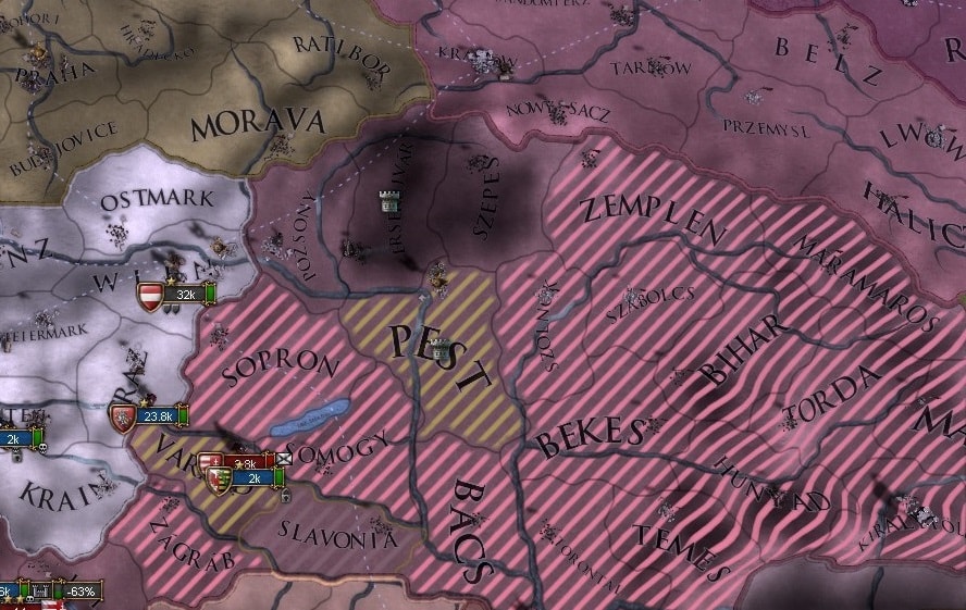 ボヘミアぐらいは許容できますが、オーストリアやポーランドからライバル視されるとハードモードなので注意しましょう。
