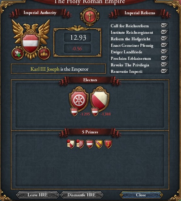 1737年にユトレヒトとアルザスを併合して終戦、神聖ローマ帝国は滅亡してRuina Imperliの実績を解放