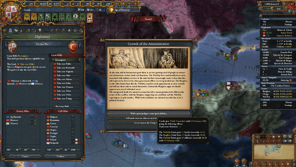 今後は、バルカン半島を起点として東へ東へと進んでいきます。まだ包囲網が怖いので、しばらくは再征服CBを用いた拡張をしていきます。