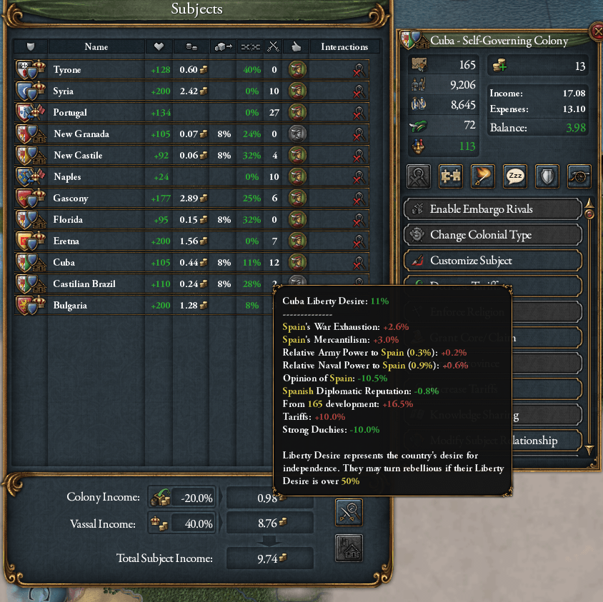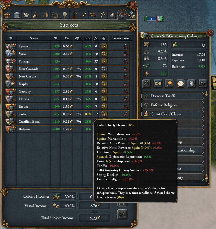 ここで小技です。改宗を強制した後に属国タブから植民地タイプを「自治植民地」から「直轄植民地」に変更すると…