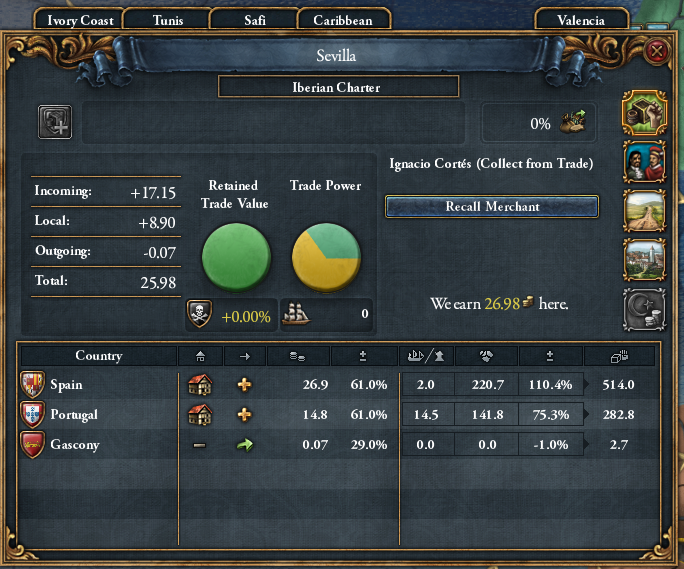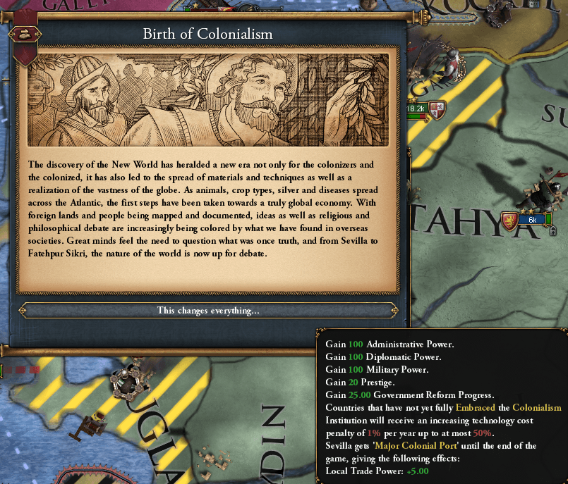 我が州セビリアで植民地主義が発生しました!君主点がありがたいです。