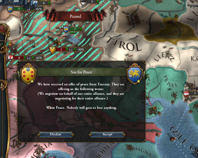 そのままテッラ=フォルマを解放するがフィレンツェは講和拒否した。