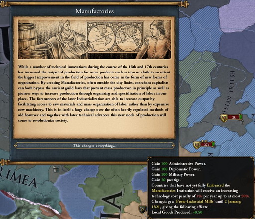 他にも統治Ideaを取り、State数を増やすことでProsperityの値を増やす(2Areaで+0.01)など細かなことをしてみましたが、大抵はnon tributariesさえ減らせば、自然と上がるでしょう。