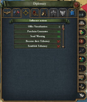 一律どんな大国でも戦勝点80ほどと外交点200で貢納国に出来ます。