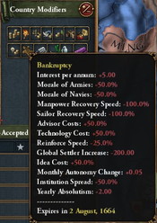 ちなみに破産しますと全土のProsperityが消失、代わりに経済にとっても天命にとってもマイナス要素であるDevastationが付きますので、中華皇帝な皆様はお気をつけください。