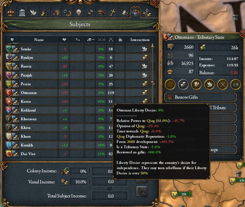 あまりに大きな国を貢納国にしますと自由への欲求が+500などあり、さっさと離脱されてしまいます。