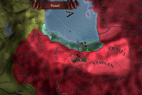 開始時の常備軍は4連隊で、陸軍扶養限界は6連隊。海軍扶養限界は地味に4あるよー。カスピ海には船は出せないけど一応海として扱ってはくれてるんだねー。面白いね。
