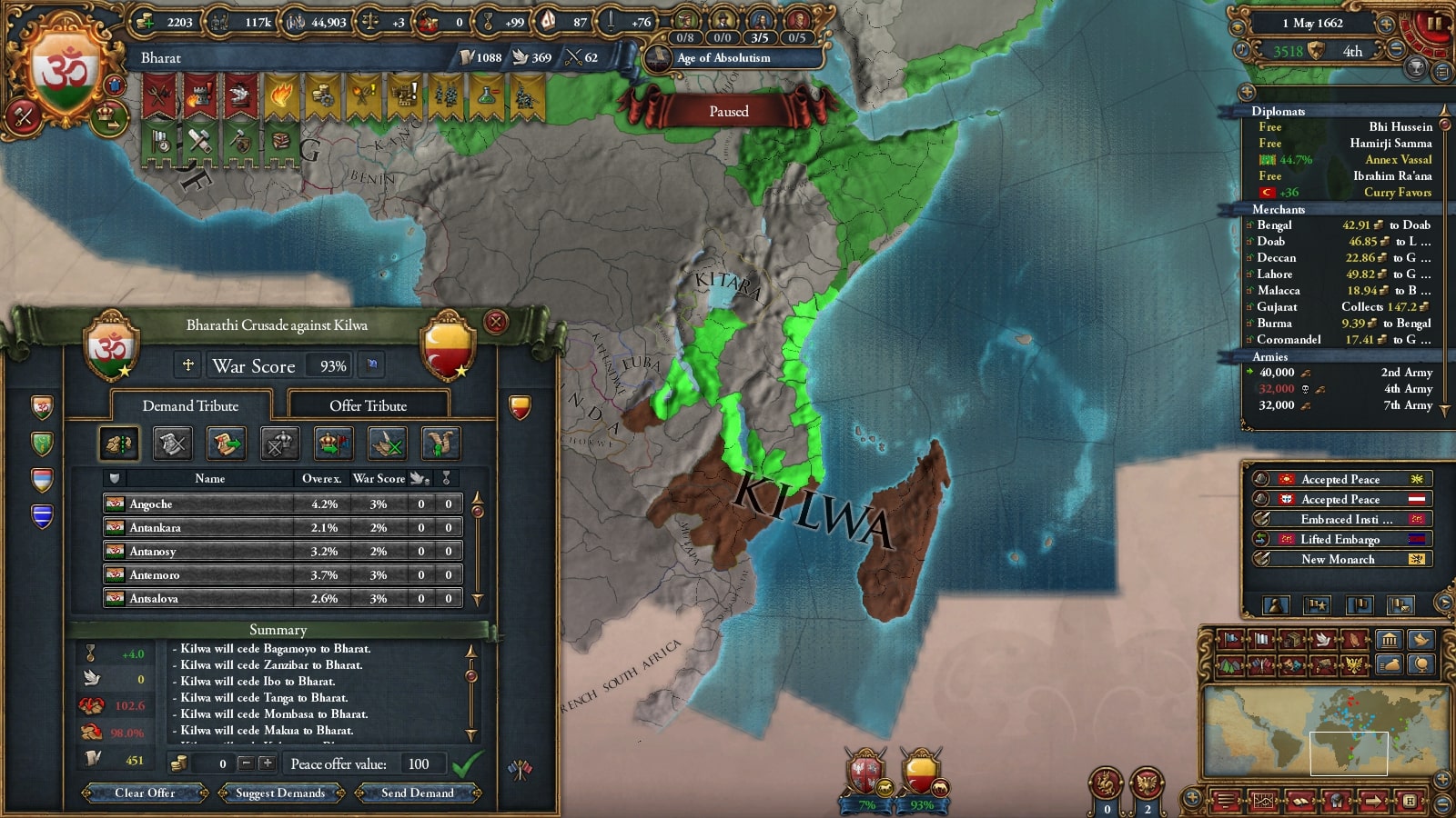 コア化が終了したので停戦破棄で宣戦、グレートブリテンが来てくれるのでジョロフ/Jolofの追い出しを狙います。