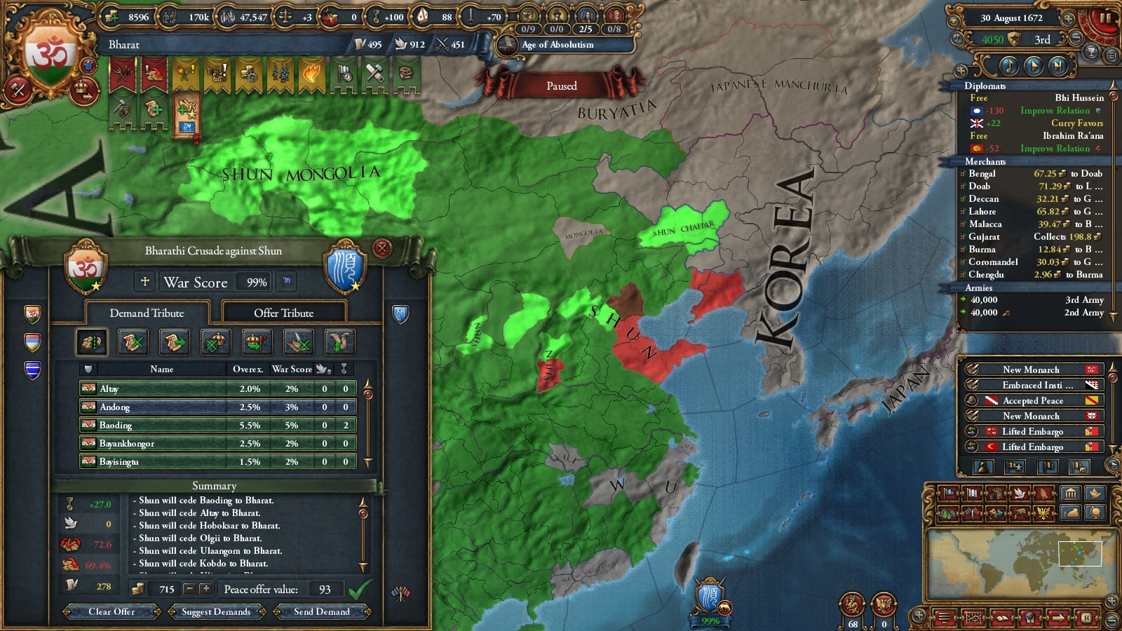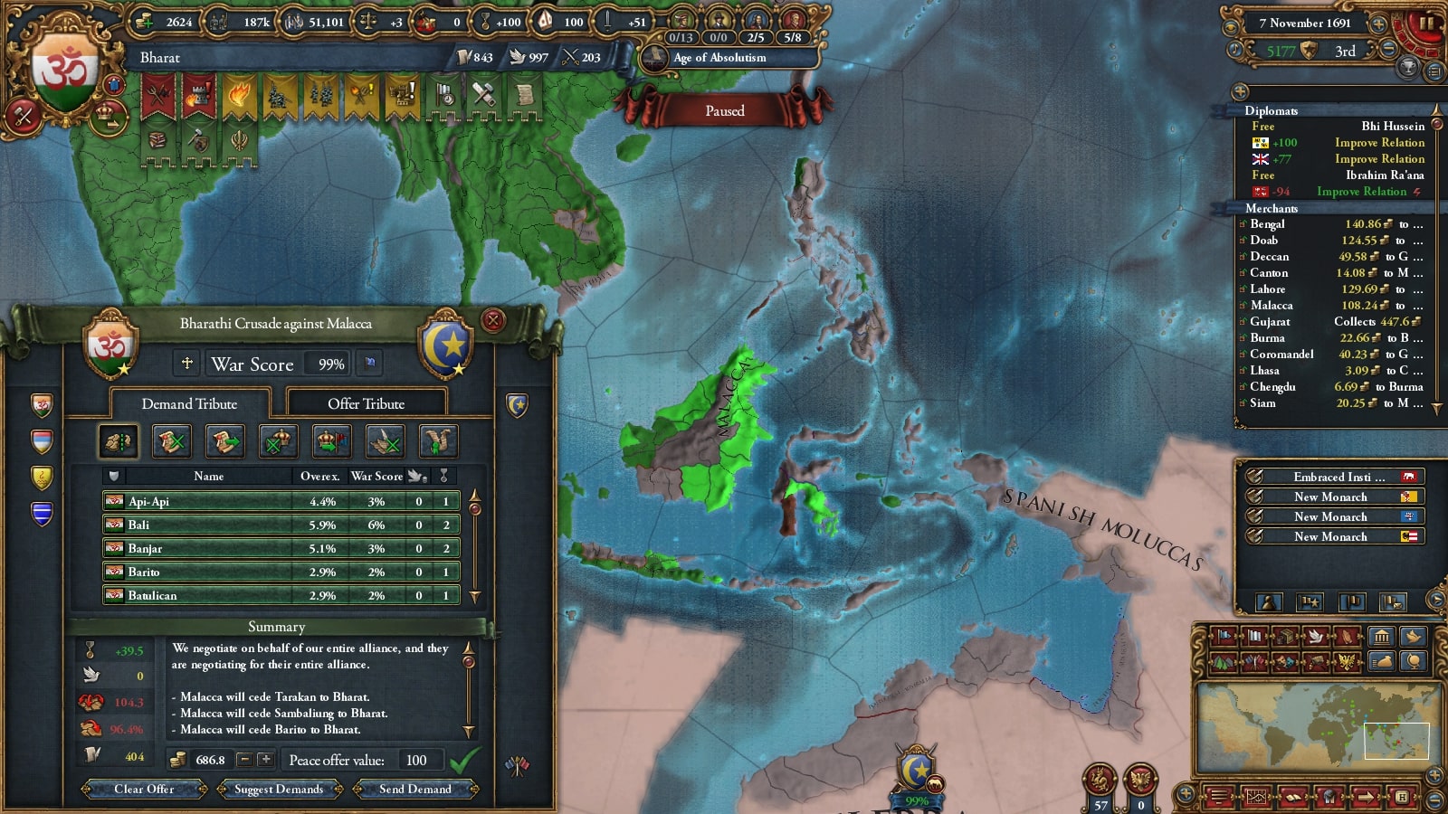 マラッカはマラッカノードでの交易方針を信仰の伝播にしていたようで、かなりの州がスンニに戻っていましたマジで許さん。