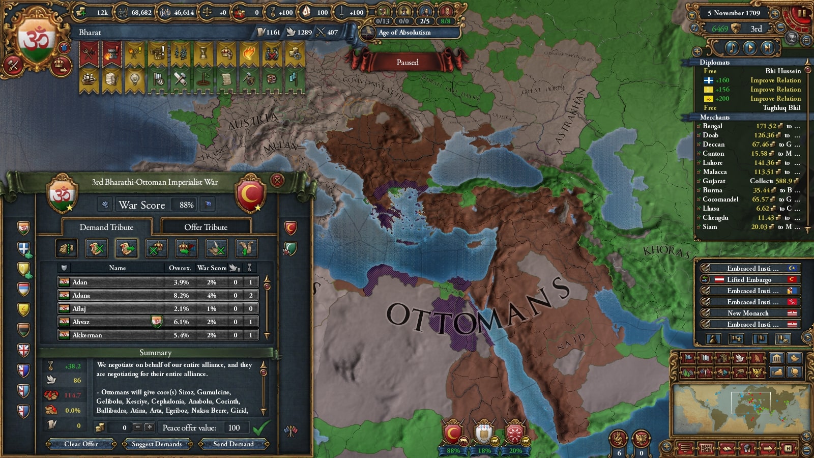 「偉大なるカールサー達よ、我々バーラト帝国は本日オスマン帝国にペルシア地域の割譲を要求した。この要求は必ずや断られ、全面戦争に発展するであろう。勇猛な兵士らよ、この戦いは我が国家の明暗を分ける戦いに必ずやなるだろう。貴様は我が国の英雄になりたいか?それとも同胞が貧しさにあえぐのを見たいか?『ik onkar』の言のもとに、神は必ず我々を祝福するだろう。」