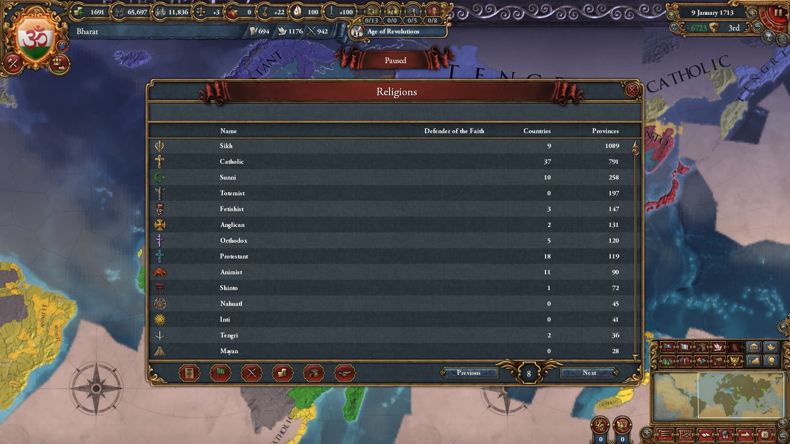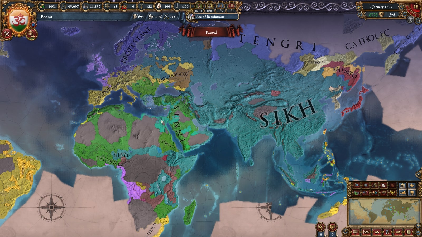 ちなみにシク教は月間統治点(外交点/軍事点)+19を出せる宗教の一つです。