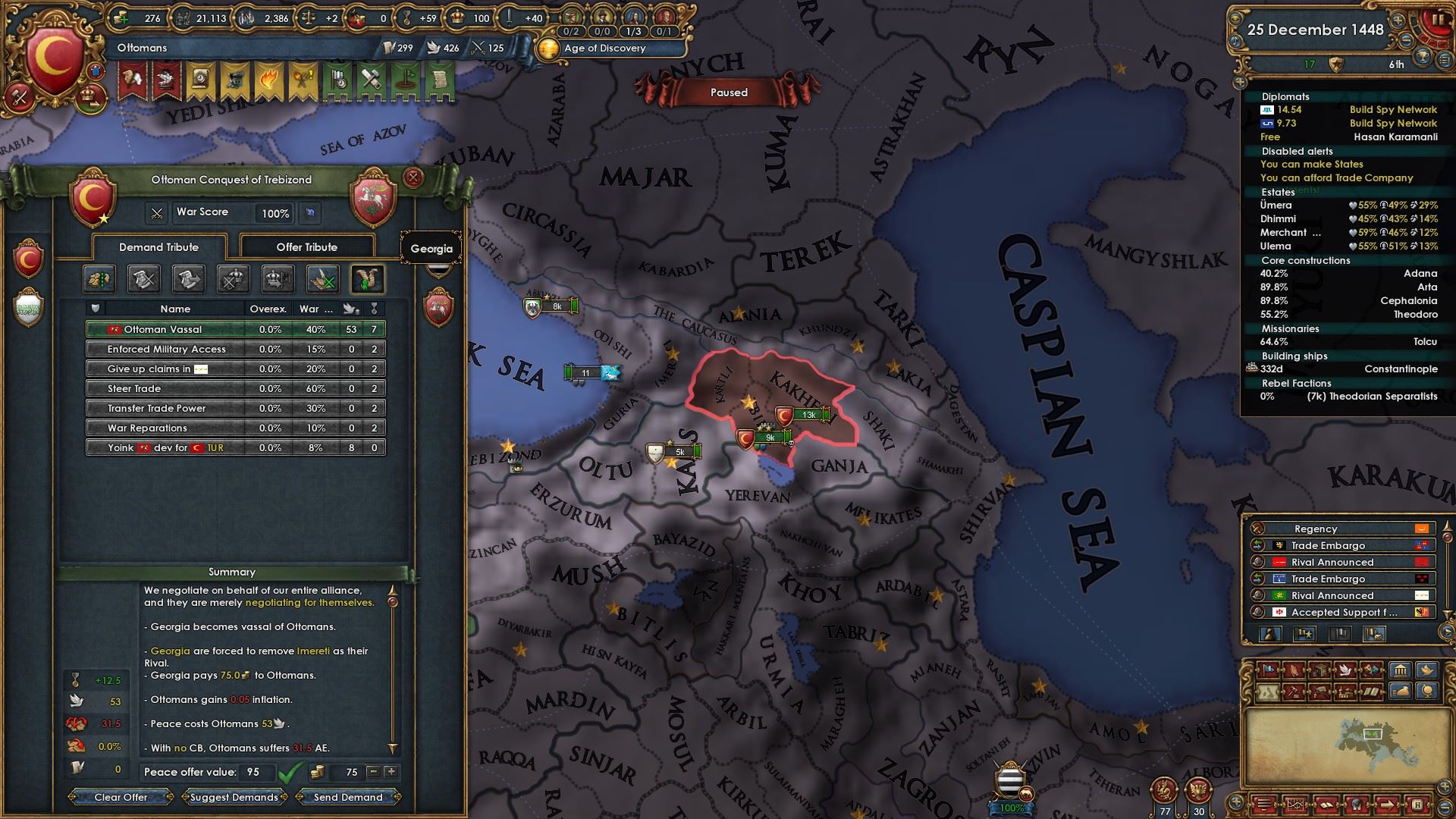 トレビゾンド戦に付いてきたジョージアを共戦国指定し武力属国化しました。