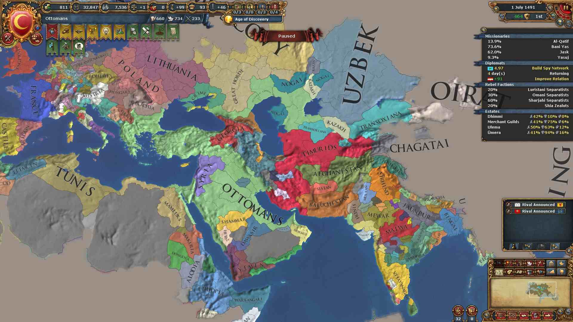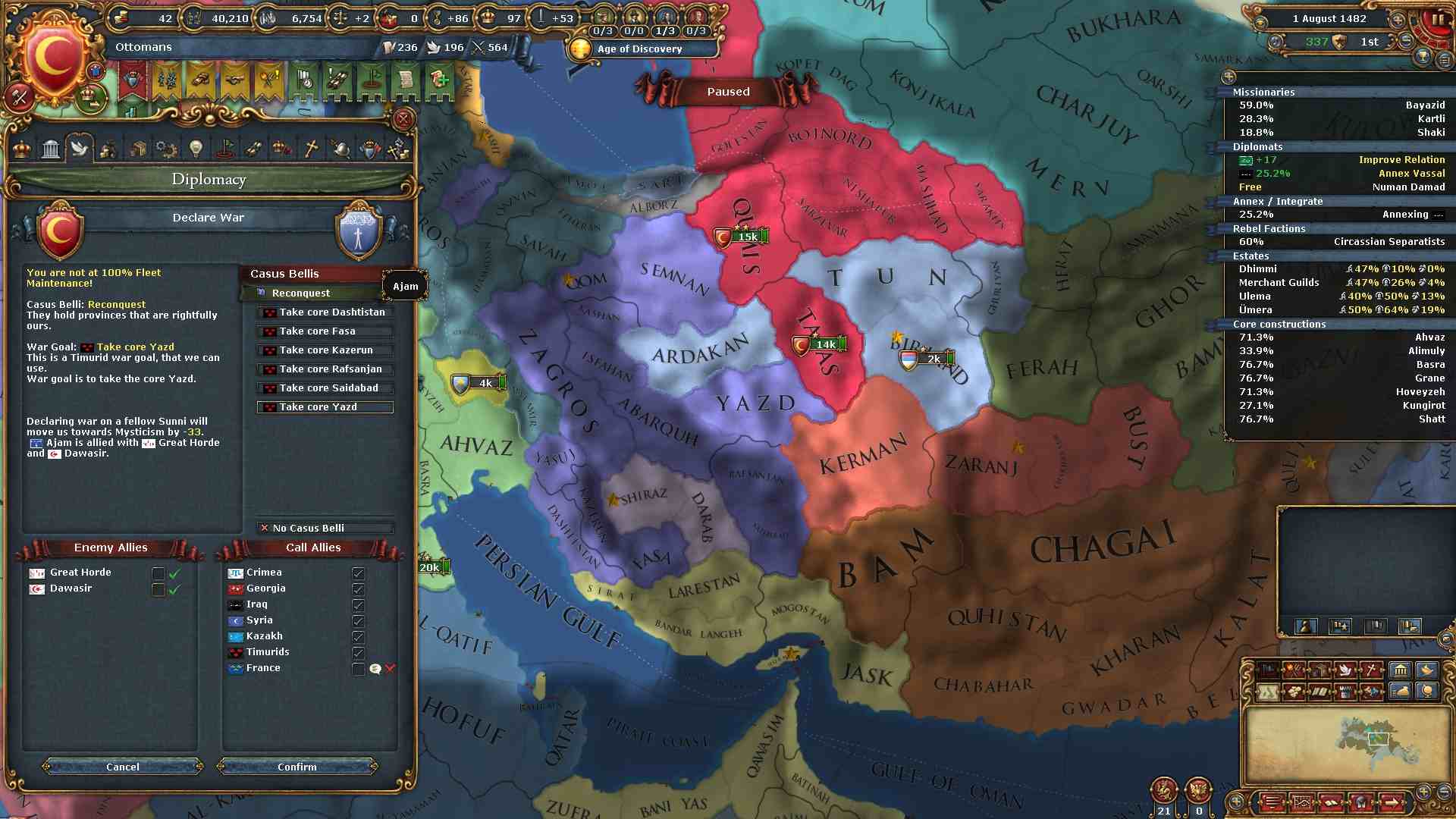 ティムールは他国との和平交渉時にそのコア州の多くを消滅されてしまっていますがまだまだ広範囲にコア州が残っています。