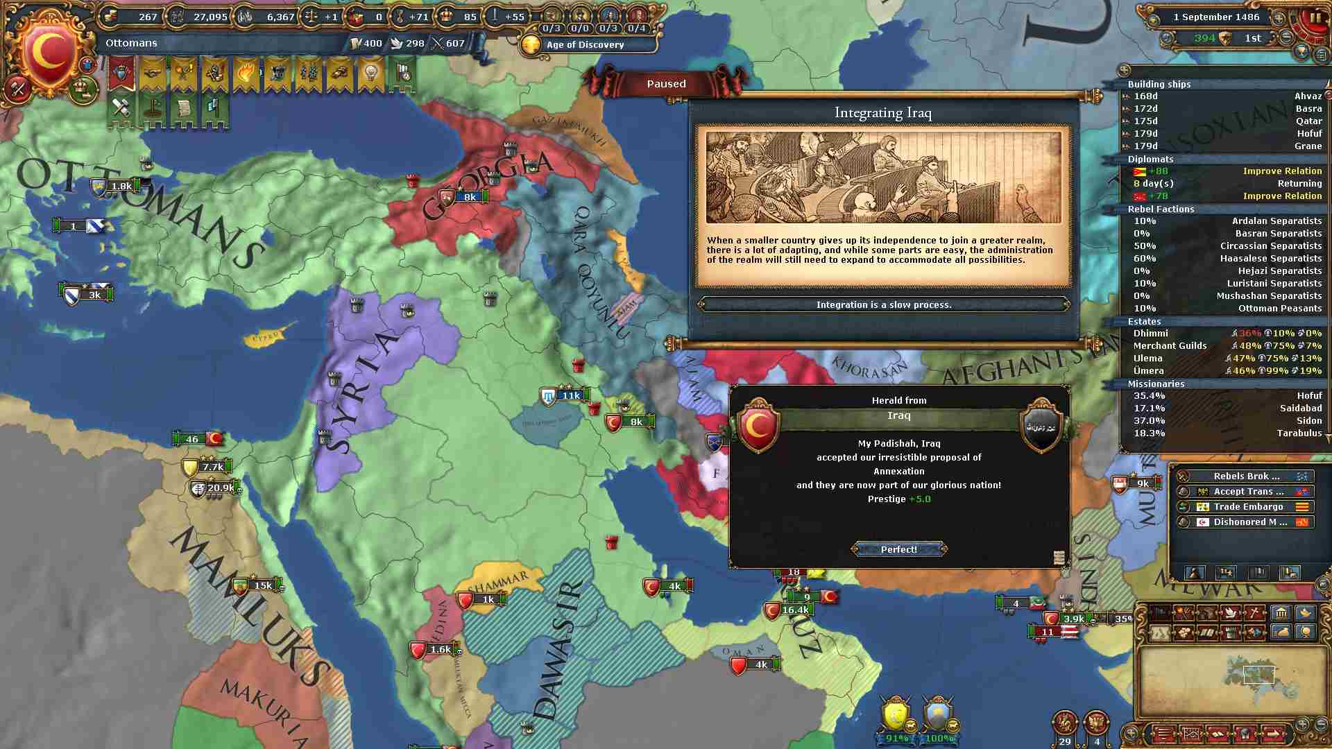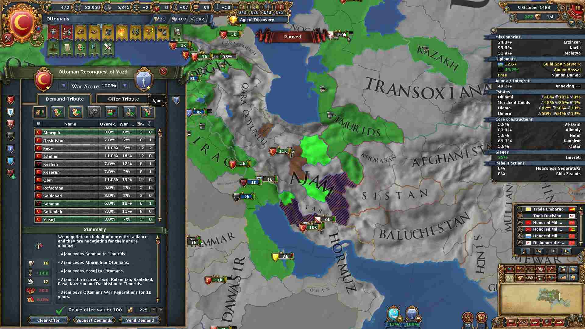 ホルムズの同盟国として参戦してきたシンドから「Unify Islam」に必要な州タッタを割譲させました。