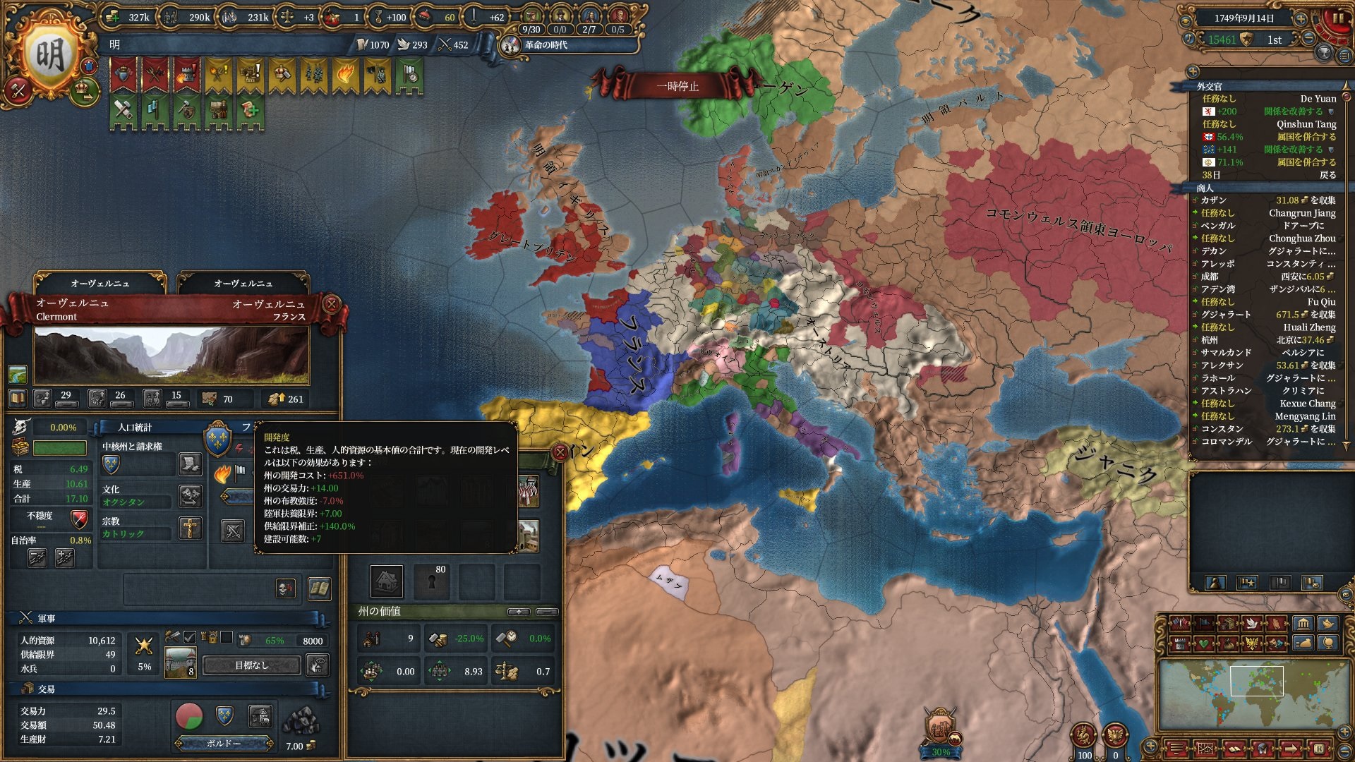色々変わっていますが、とりあえず州に革命思想が広まった際の絶対主義に対するデメリットが(絶対主義100↑の時)自治率+50%から不穏度+25に変わったのが非常に強烈なインパクトです。