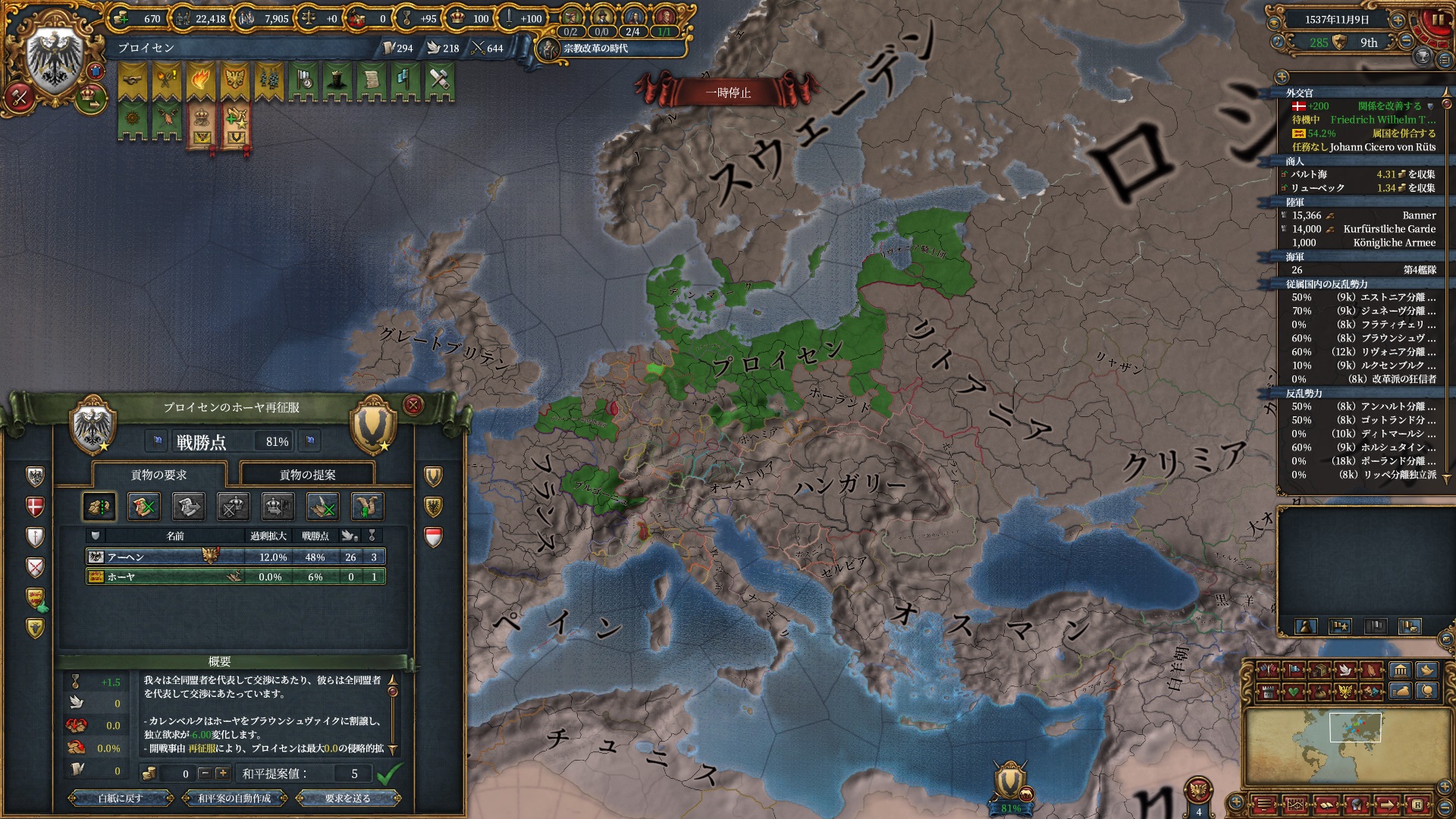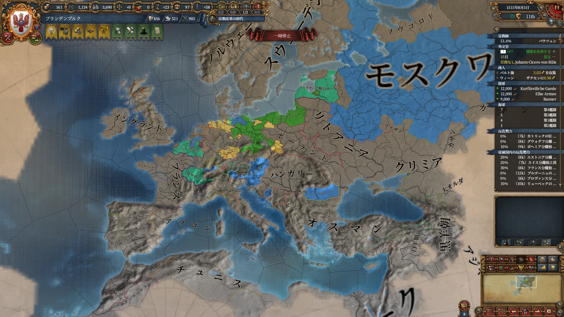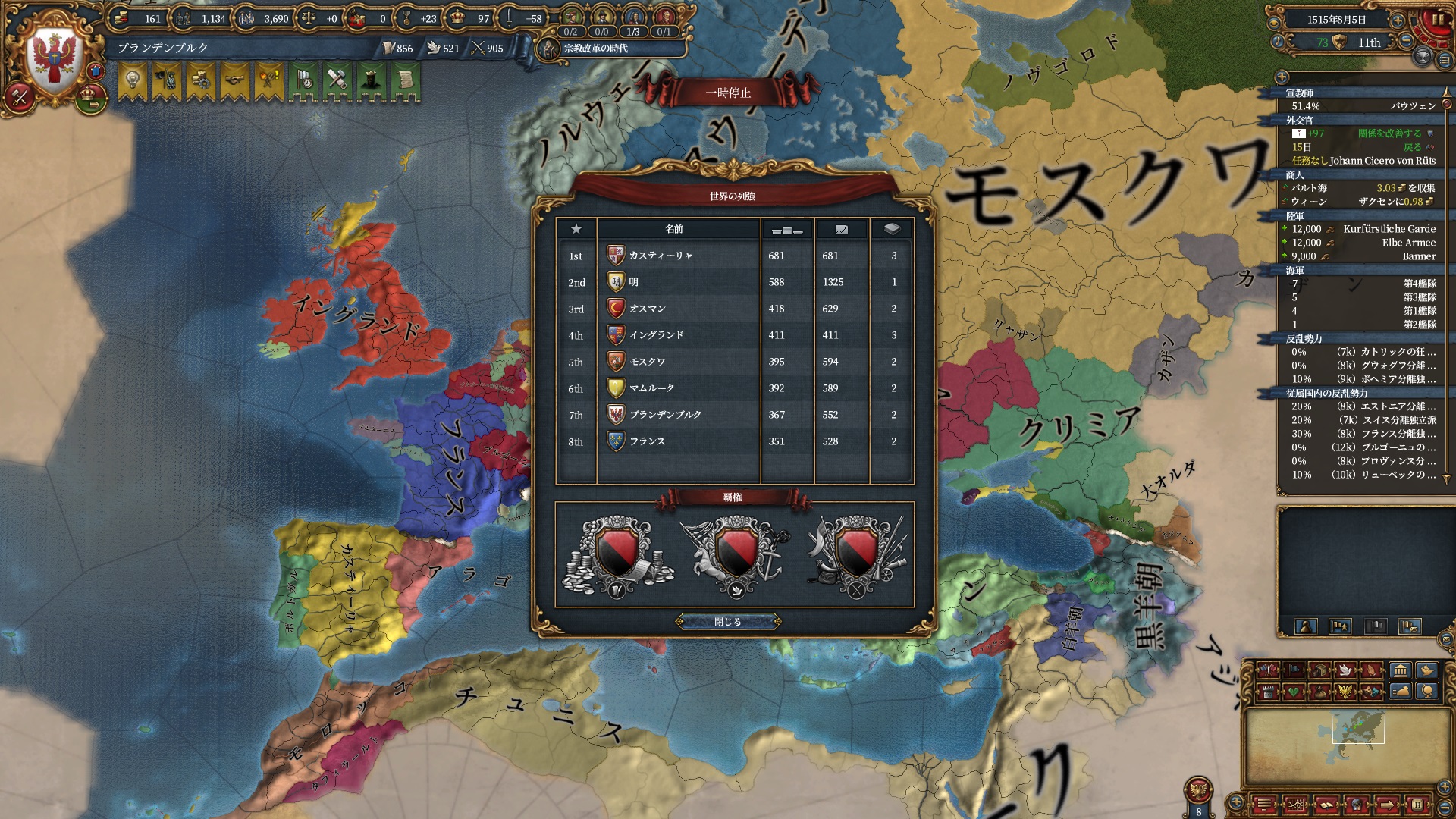ただ今回ブランデンブルクもdev300は超えていたのですが威信が低すぎて昇格出来ていませんでした。