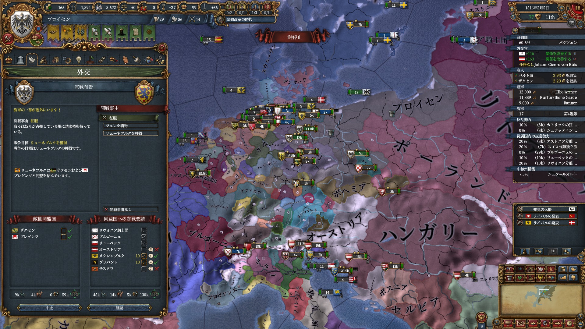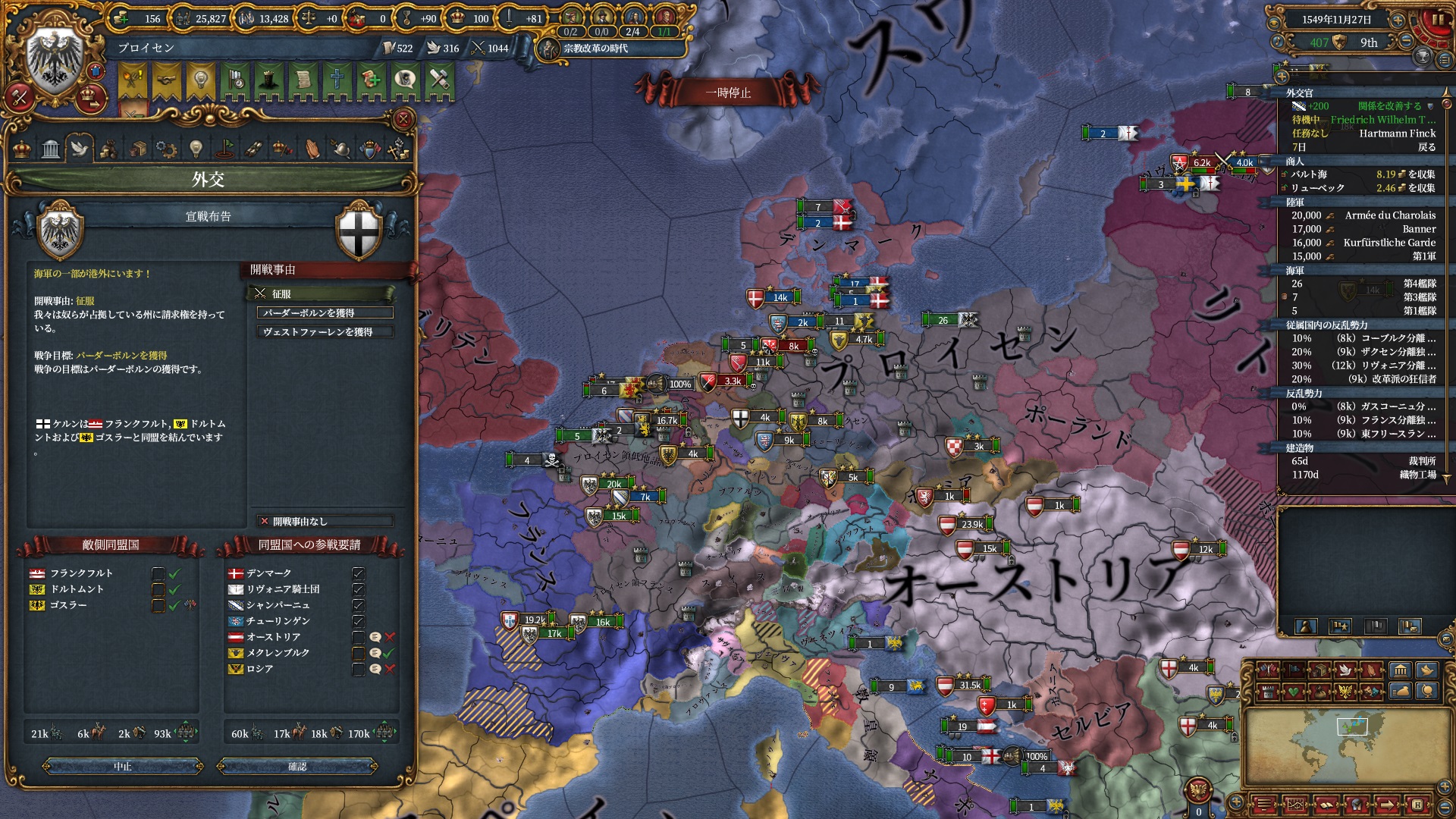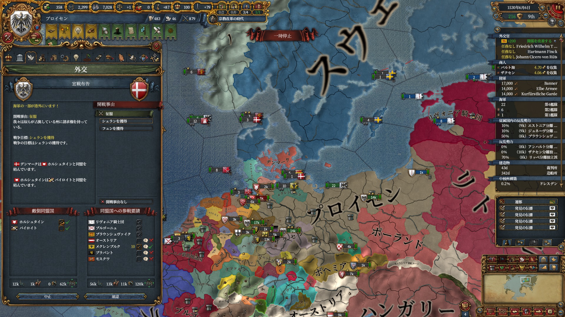 同盟国にブラウンシュヴァイクの再征服をお願いしつつ、オーストリアと既に殴り合って大変な事になってるポーランド戦に便乗。