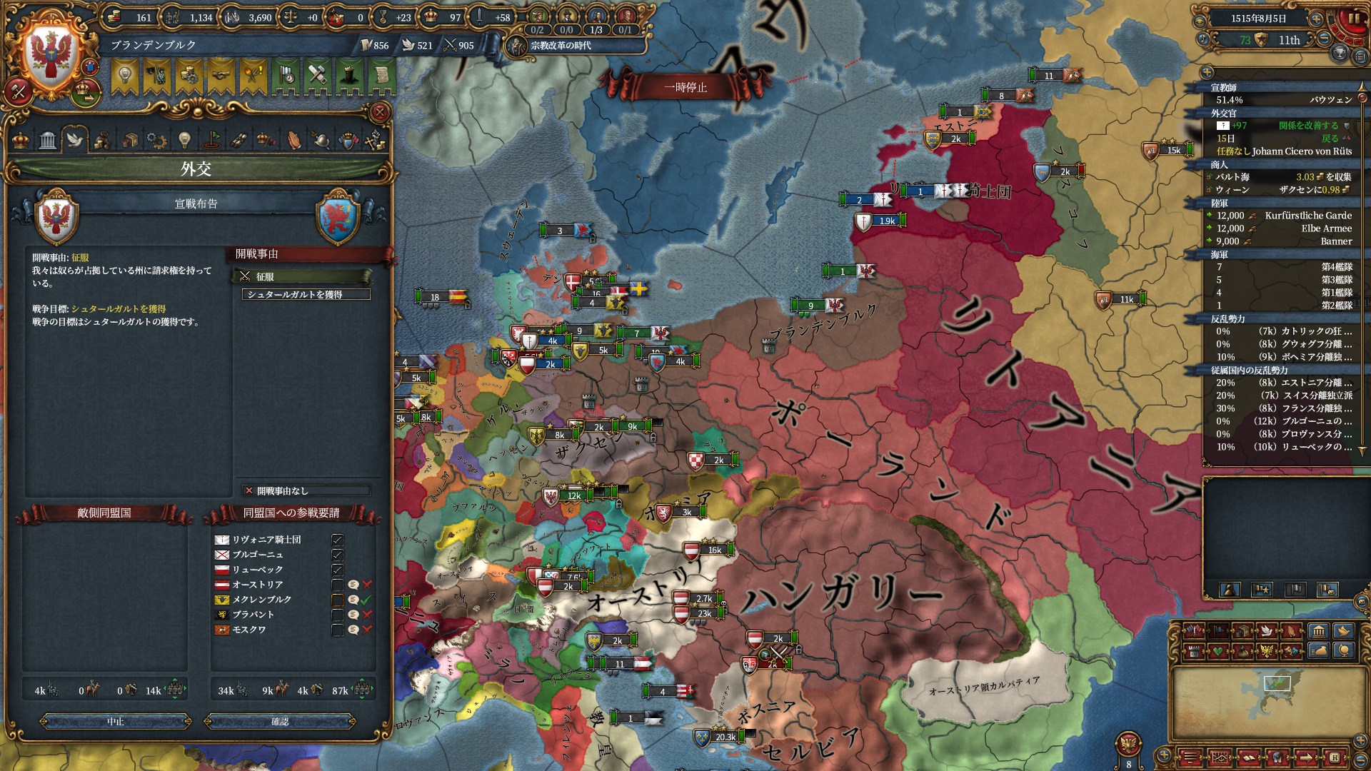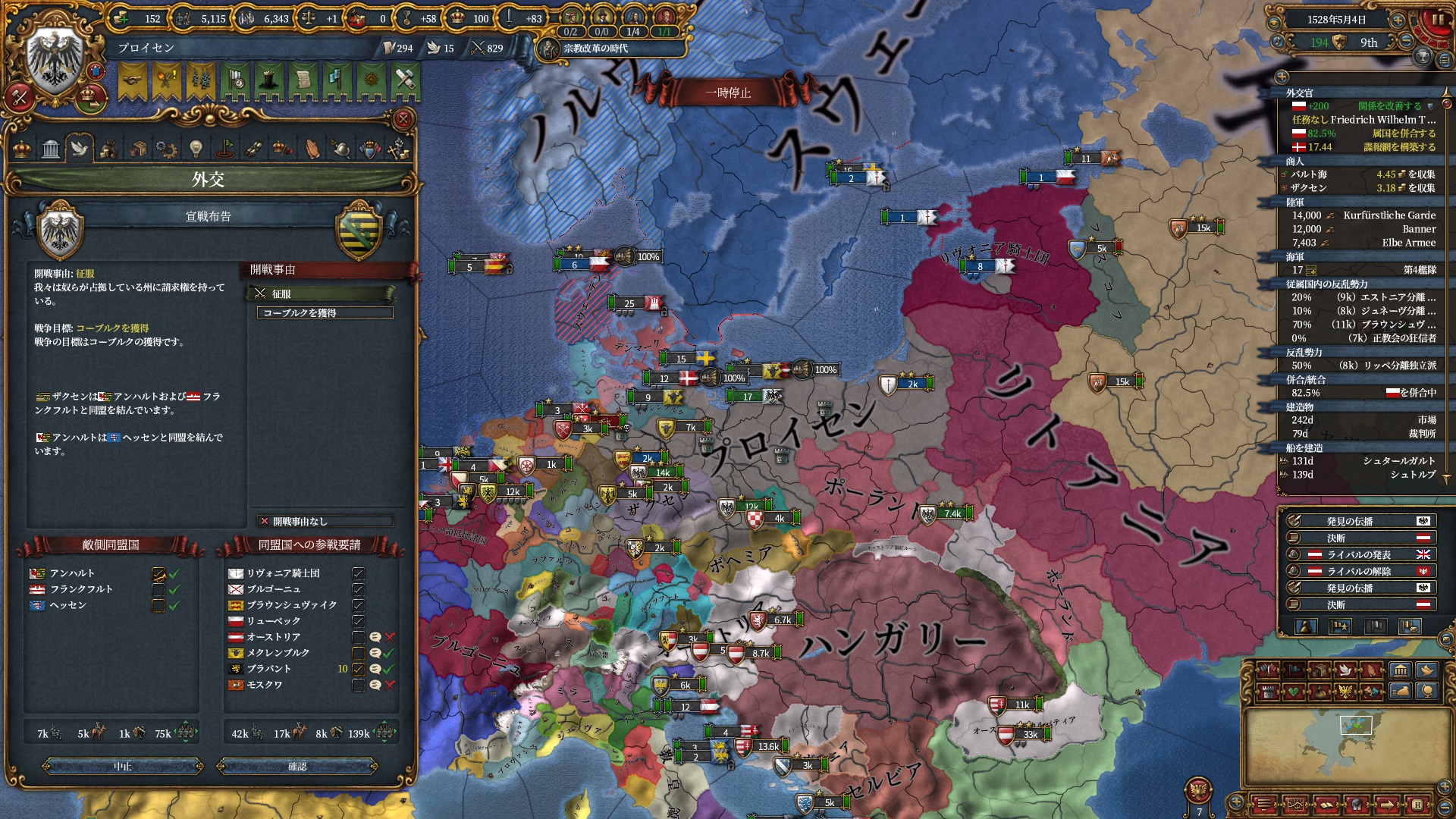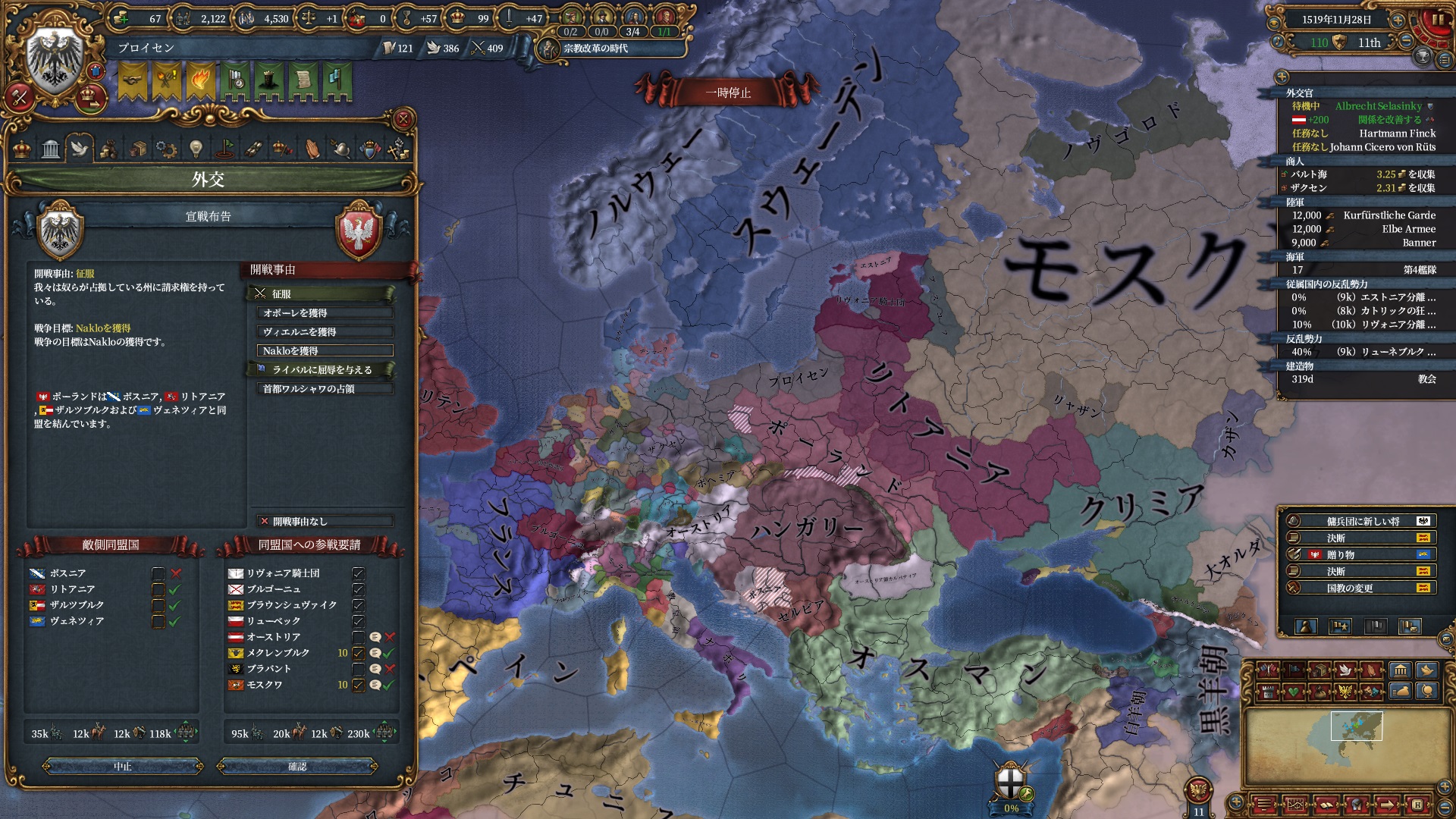 同盟国にブラウンシュヴァイクの再征服をお願いしつつ、オーストリアと既に殴り合って大変な事になってるポーランド戦に便乗。