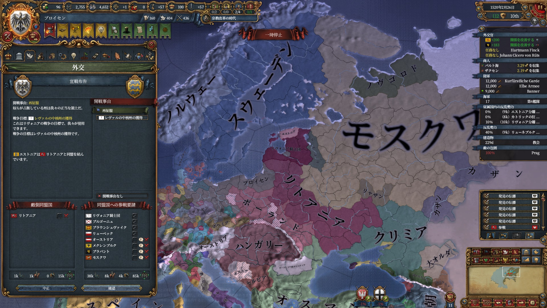 ポーランドその他同盟国はモスクワに適当に任せつつ、自身はそろそろコア期限が切れそうなエストニアを攻めてます。