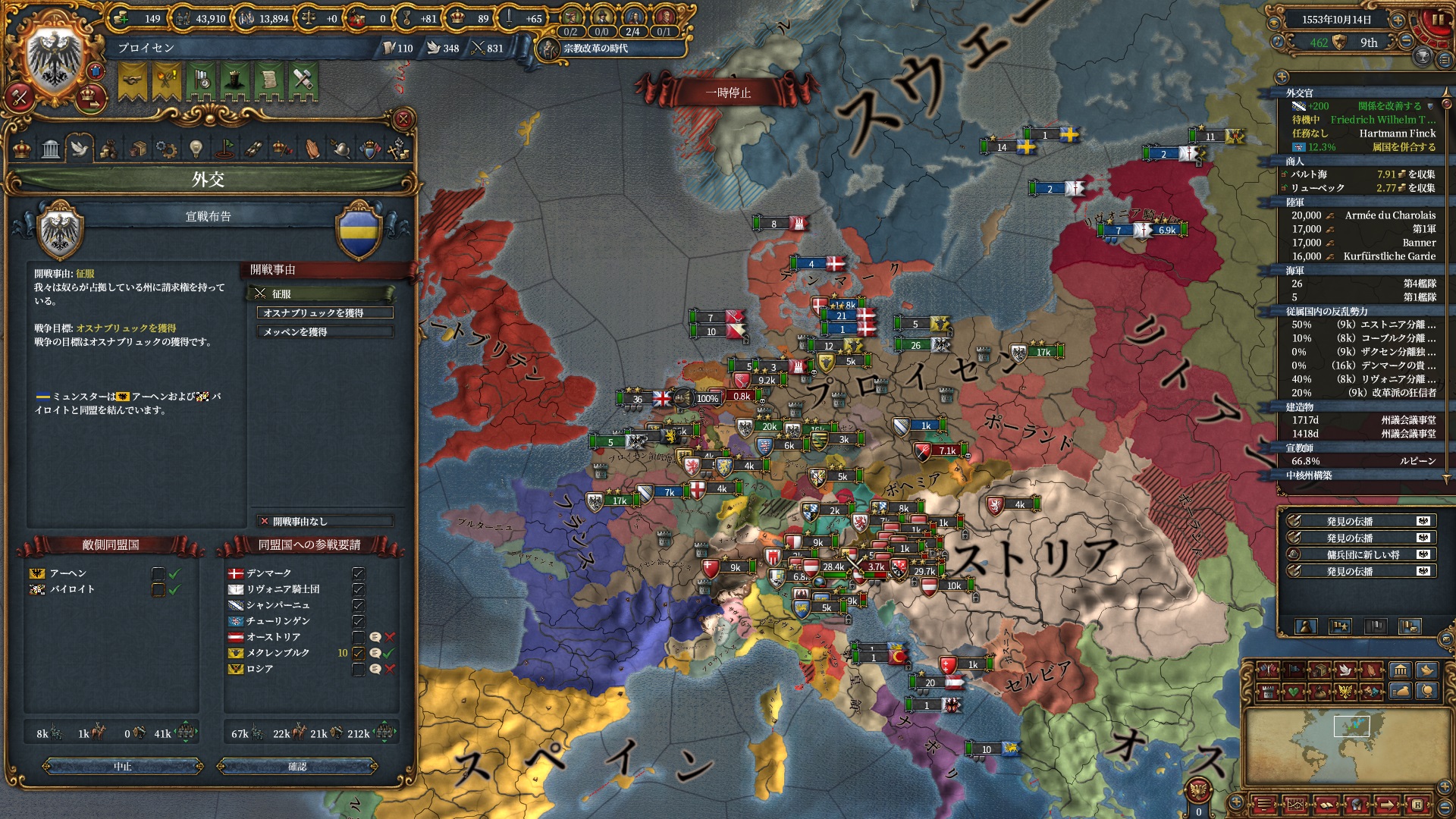 イングランド・ポーランド・リトアニアはライバルで、フランス・カスティーリャはコア・請求権の問題で領土欲が凄いです。