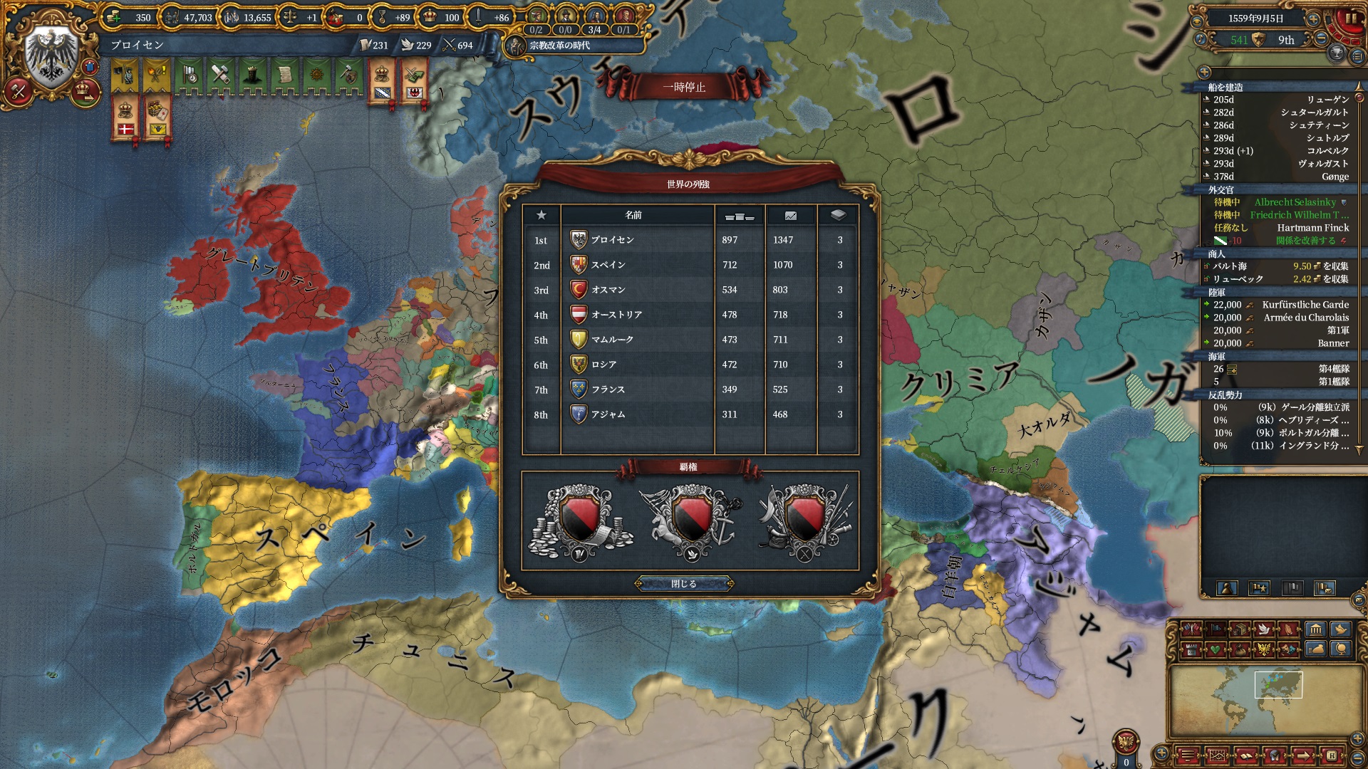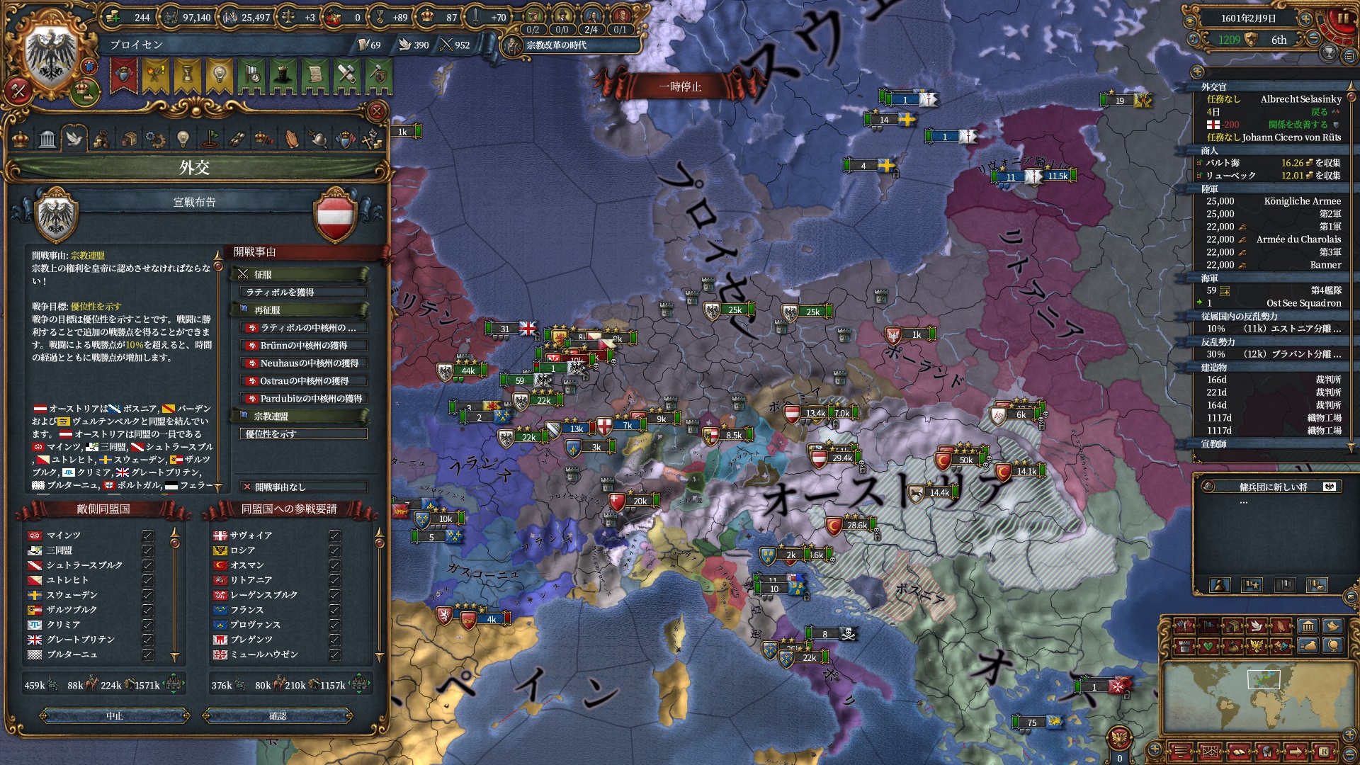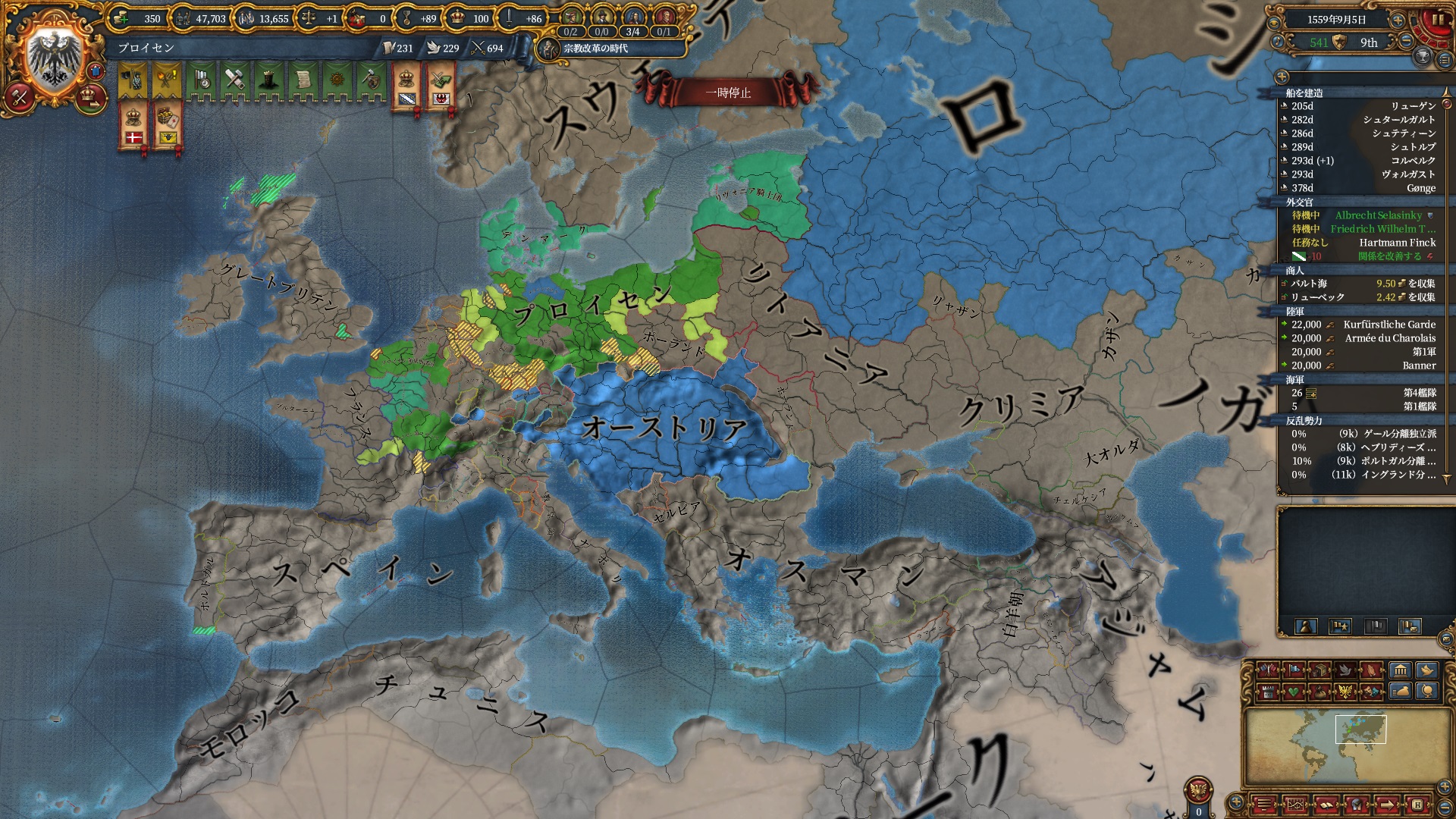というわけでやる気は無かったのですが、運悪くプファルツがオーストリアの同君下位となってしまってプロイセンミッションで特に大事な統治効率ルートが進まなくなっています。