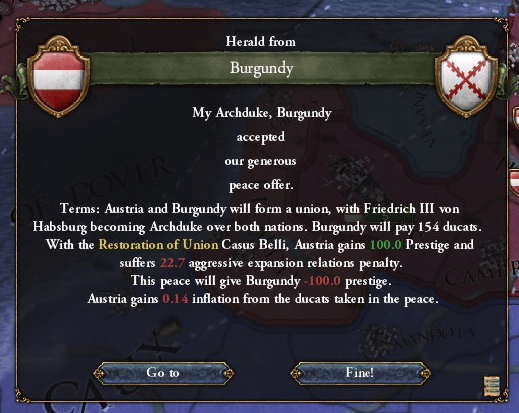 オーストリアの全面勝利により、ブルゴーニュはハプスブルク家の支配を受け入れることをしぶしぶ承諾しました。