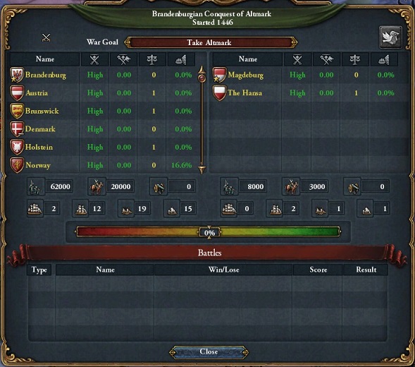 早速勢力を拡大すべく、マグデブルクの領有するアルトマルクに外交官を派遣し、請求権捏造を行う。