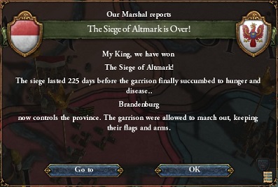 軍事力の差は圧倒的。ほとんど何の障害も無く、半年あまりでアルトマルクを攻略できた。